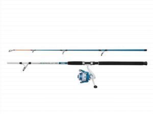 For beginners starting shore fishing in the UK, we recommend a versatile 12ft to 14ft beach caster rod paired with a fixed spool reel (size 7000 or 8000). This setup is easier to master than a multiplier reel. A “starter kit” usually includes a rod, reel, and basic terminal tackle like pre-tied flapper rigs and 4-6oz lead weights.