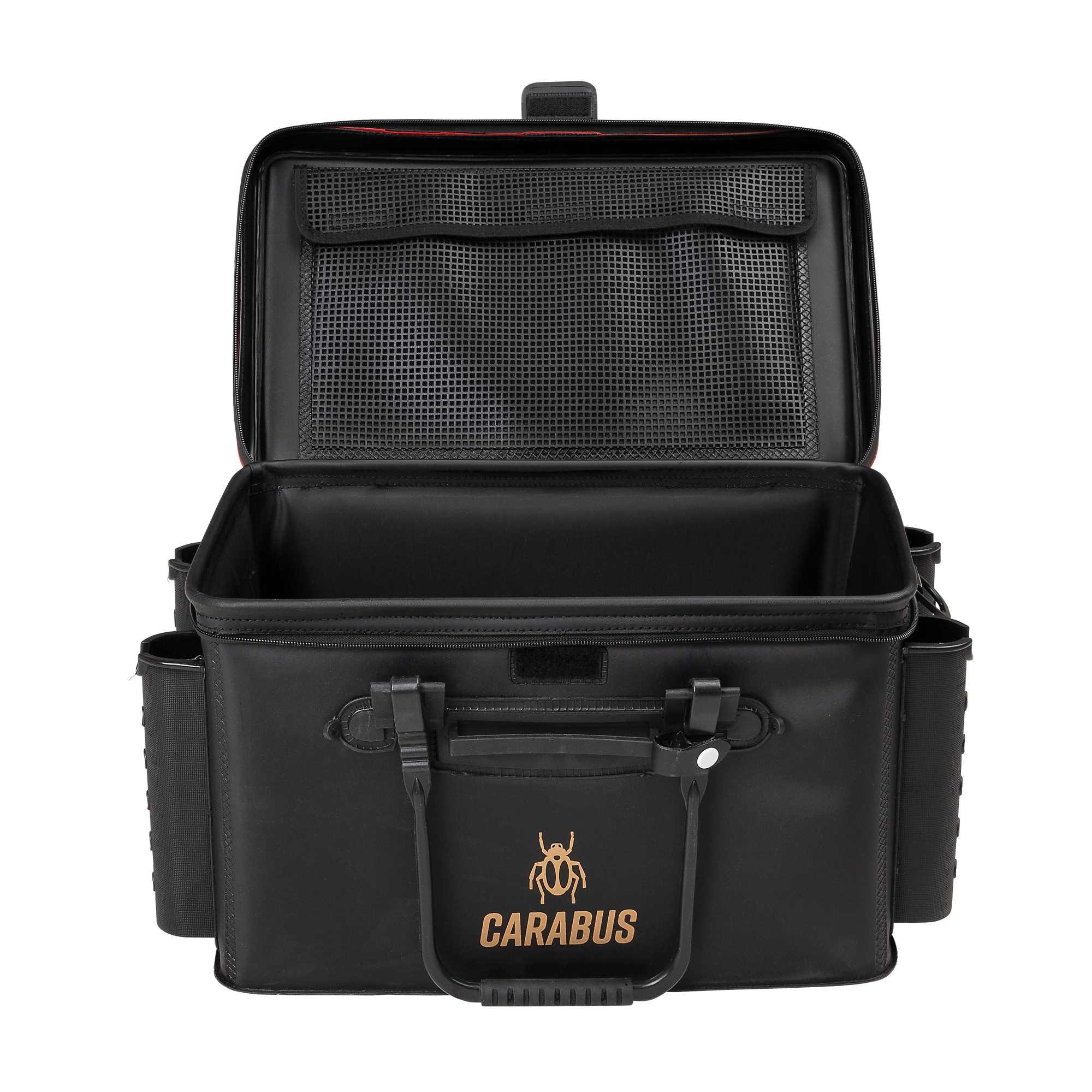 CARABUS Bakkan bags are the ultimate in waterproof design. Made from heat sealed EVA this is the bag that will never let water or dirt in. With 4 moulded rod holders you can carry set ups for any eventuality. Moulded carry handles or removable webbing strap allow you to carry this bag with ease and is compatible with the modular CARABUS Insert Pouches.