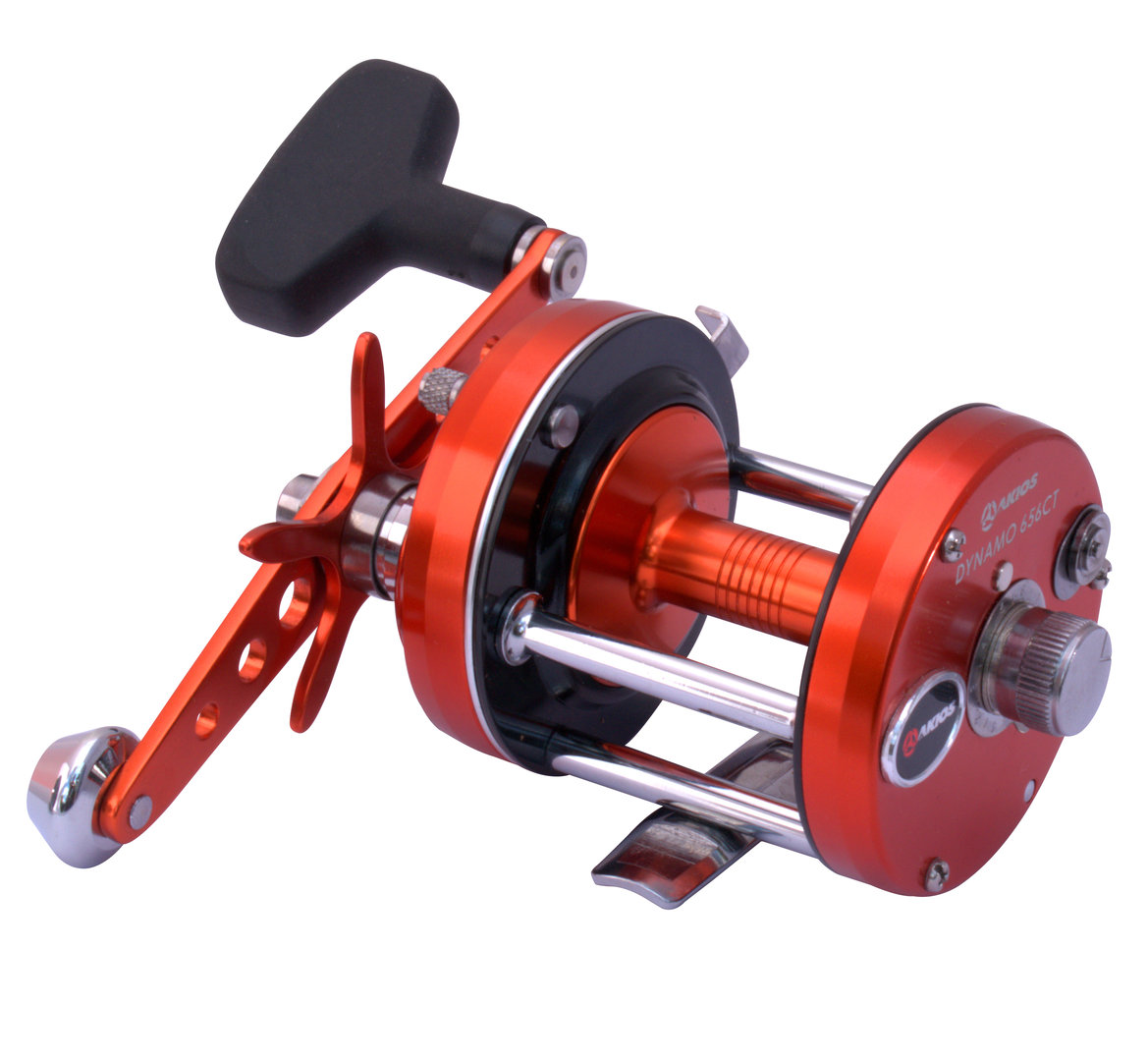 Akios Dynamo 656 CT Multiplier Capable of huge casting distances. Fitted with lightweight anodized aluminum side plates, an open CT cage, two ABEC stainless steel bearings, and Akios Dyna Max 6 block dynamic centrifugal braking system. Features :