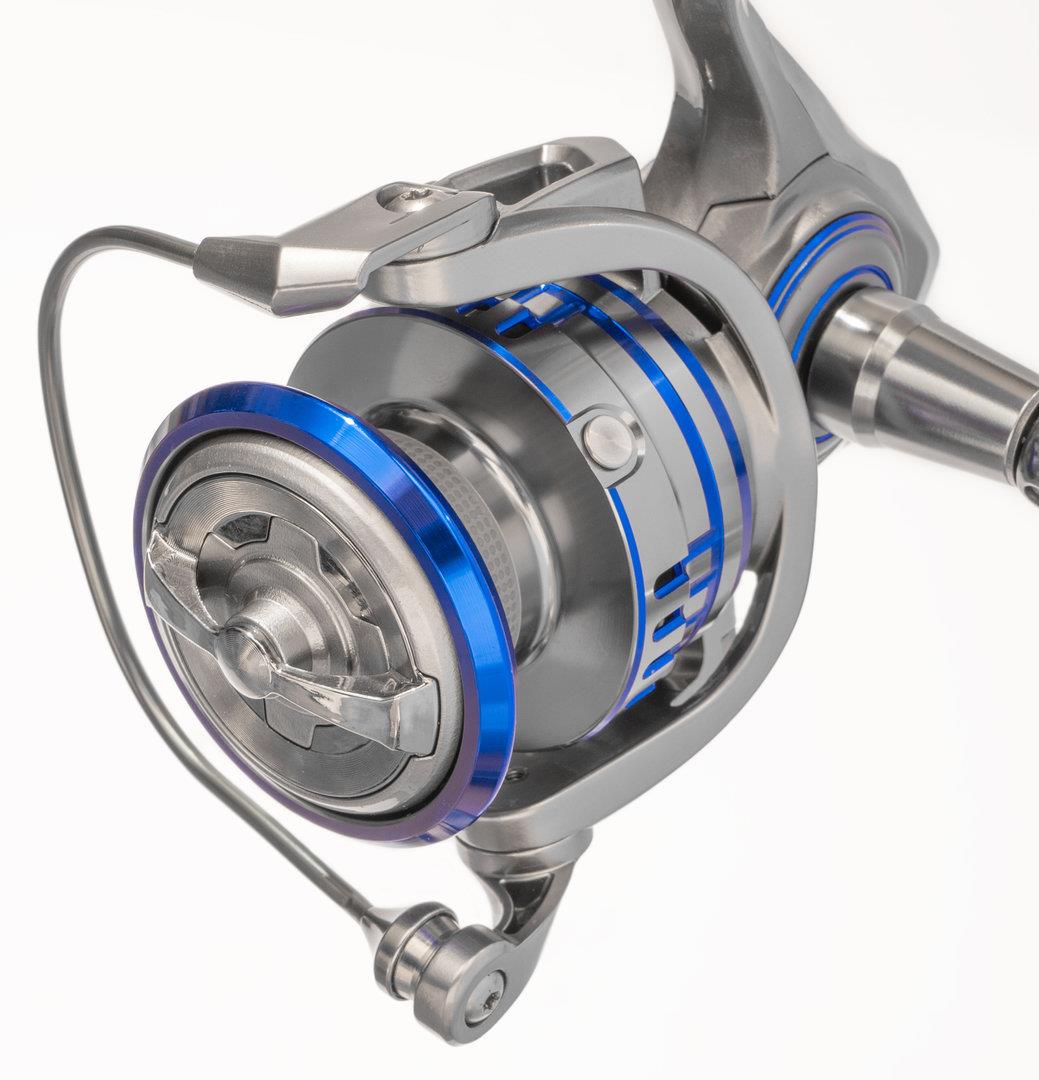 Both spools, deep and shallow have the rubber grip braid insert ensuring the braid does not slip under pressure, also The 8+1 stainless bearings make the reel ultra smooth with a 4.6:1 ratio putting up to 74cm of line onto the spool with every turn of the handle and is powered through an ergonomic CNC machined power handle.