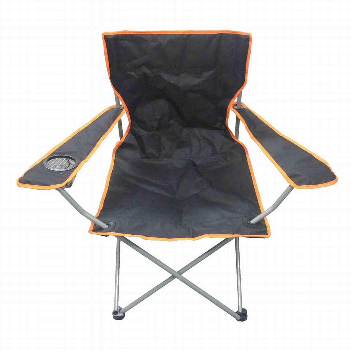 Folding chair with a cup holder for storing drinks, bottles and cups.