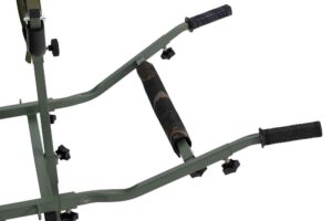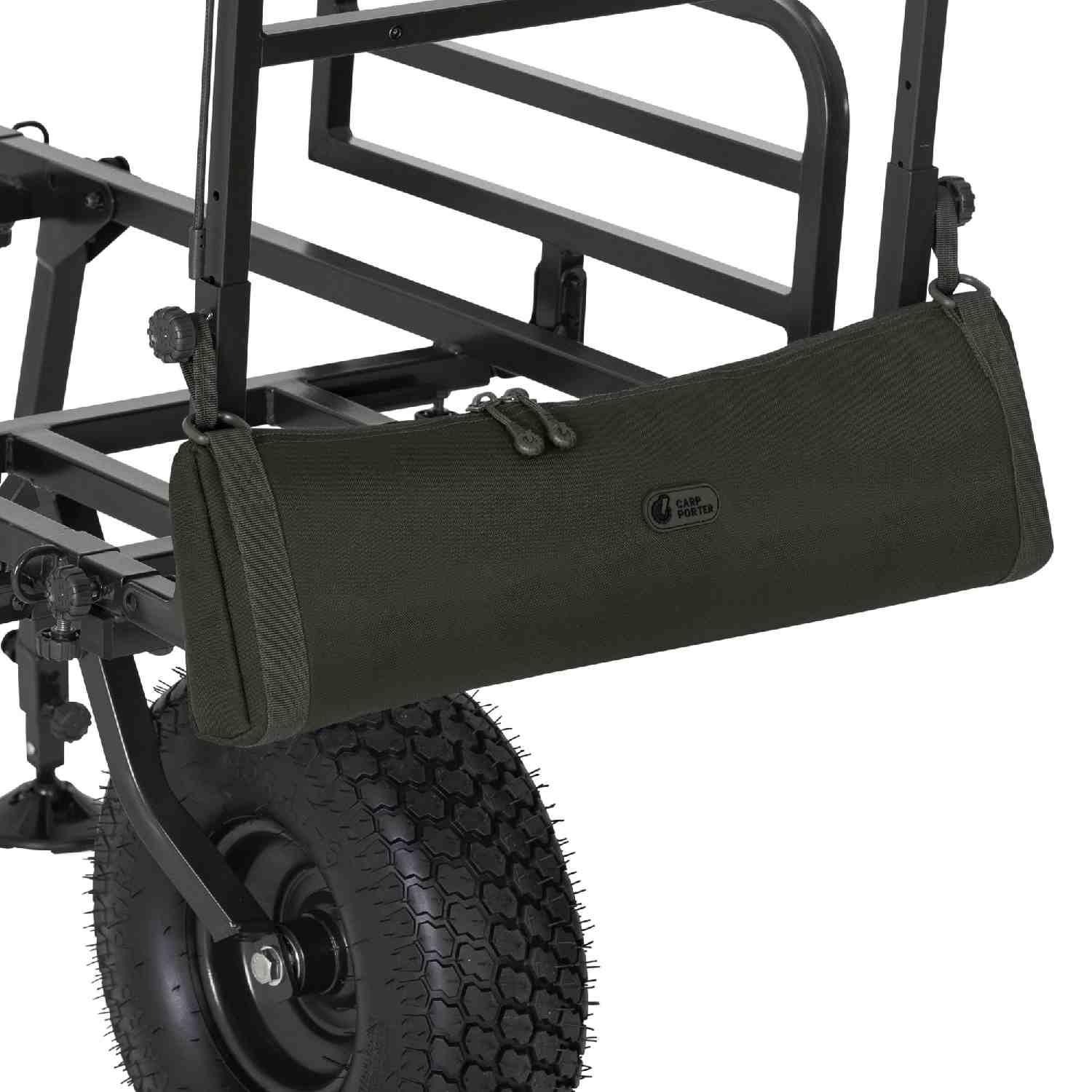 Purpose built for practicality, the Bank Stick Bag is designed to hang neatly and securely from the thumb screws on the front H-frame of your Carp Porter, keeping weight forward for better balance and effortless pushing.
