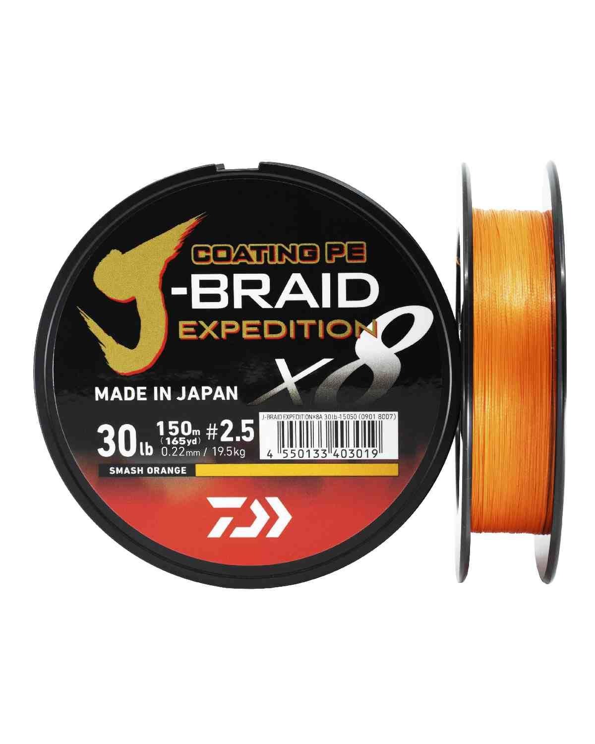The Daiwa J-Braid Expedition X8 represents the pinnacle of braided fishing line technology. This high-performance line, packaged on a 300-meter spool in vibrant Smash Orange, combines Japanese engineering with a revolutionary coating to deliver extreme durability, unmatched casting distance, and superior line visibility.