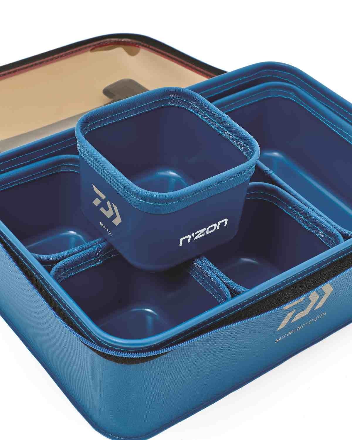 Keep your bait and feed perfectly organised and protected from the elements with the Daiwa N’Zon Bait Protect System. Engineered from ultra-durable, rigid EVA, this modular system is the ultimate storage solution for the serious feeder or match angler. It’s especially ideal for sessions where you need to manage multiple types of groundbait, pellets, and particles, including wet and live baits.