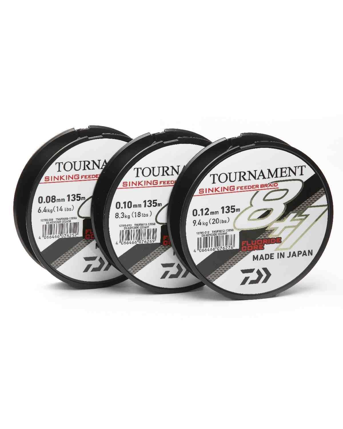 The Daiwa Tournament Sinking Feeder Braid 8+1 is a high-end, specialized main line designed specifically for competitive and technical feeder fishing. It features an innovative ‘8+1’ construction, incorporating a dense core for superior sinking properties, while maintaining the renowned strength and castability of the Tournament series.