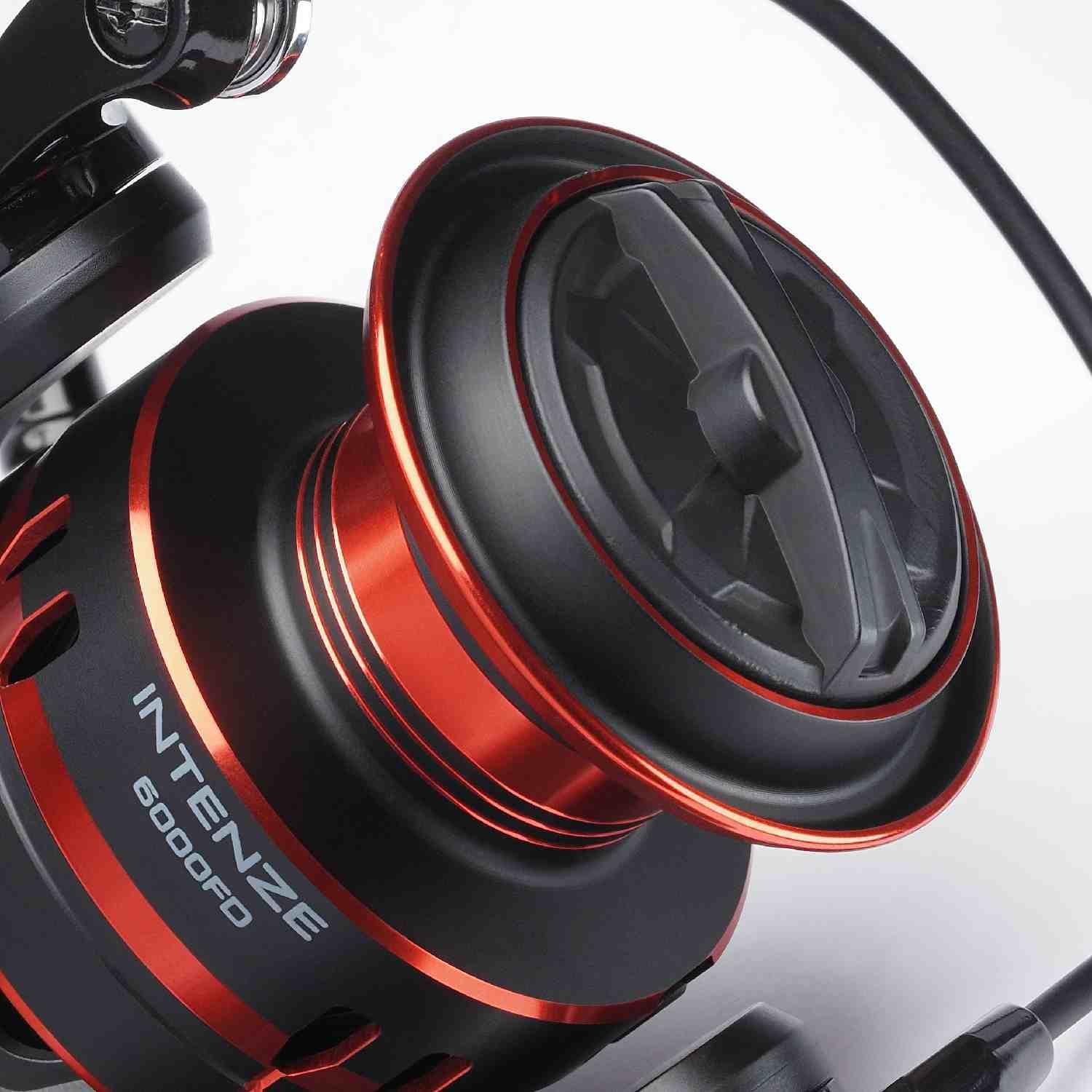 The “Direct-Drive” Advantage: The screw-in handle on the Intenze 6000FD isn’t just for show. Because it threads directly into the main gear, it transfers every bit of energy from your hand to the rotor. If you’re fishing with braided line and a sensitive rod, this setup allows you to feel the most subtle “plucks” from a following predator or the light vibration of your lure’s action much more clearly than with a standard “push-through” handle.