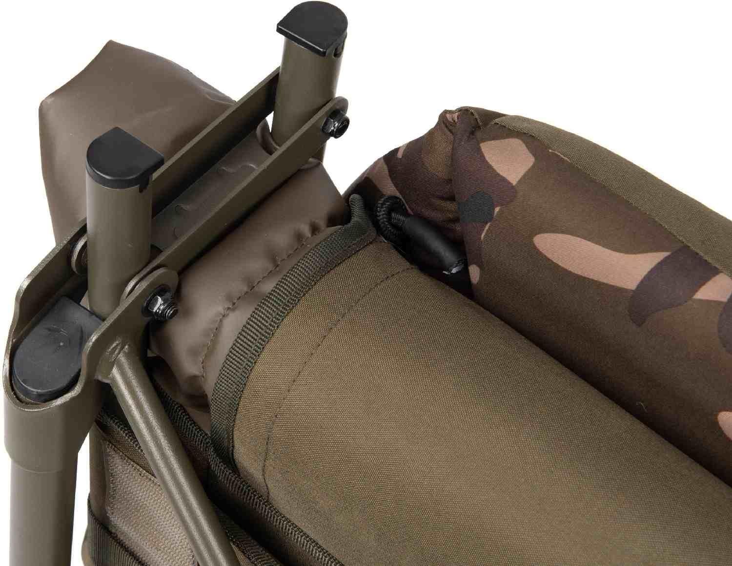 Double-Hinge System: Designed with the mobile angler in mind, the double hinges allow you to fold the bed flat even with a thick 5-season sleeping bag tucked inside.