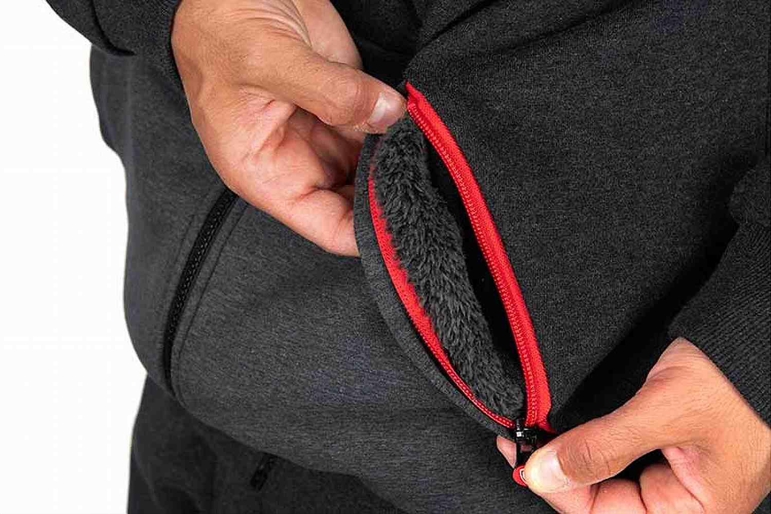 • Sherpa finish side: double ‘pouch’ style pockets and zipped-closed, left chest pocket
