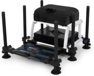 D25 Competition SEAT BOX frame – Features the new 25mm super light and compact leg system – comprises 4 x fisxed D25 & 2 x Pinlock D25 legs – Cushion block with pole support – 1 x 30mm side drawer, and 1 x 30mm winder trayCarry strap