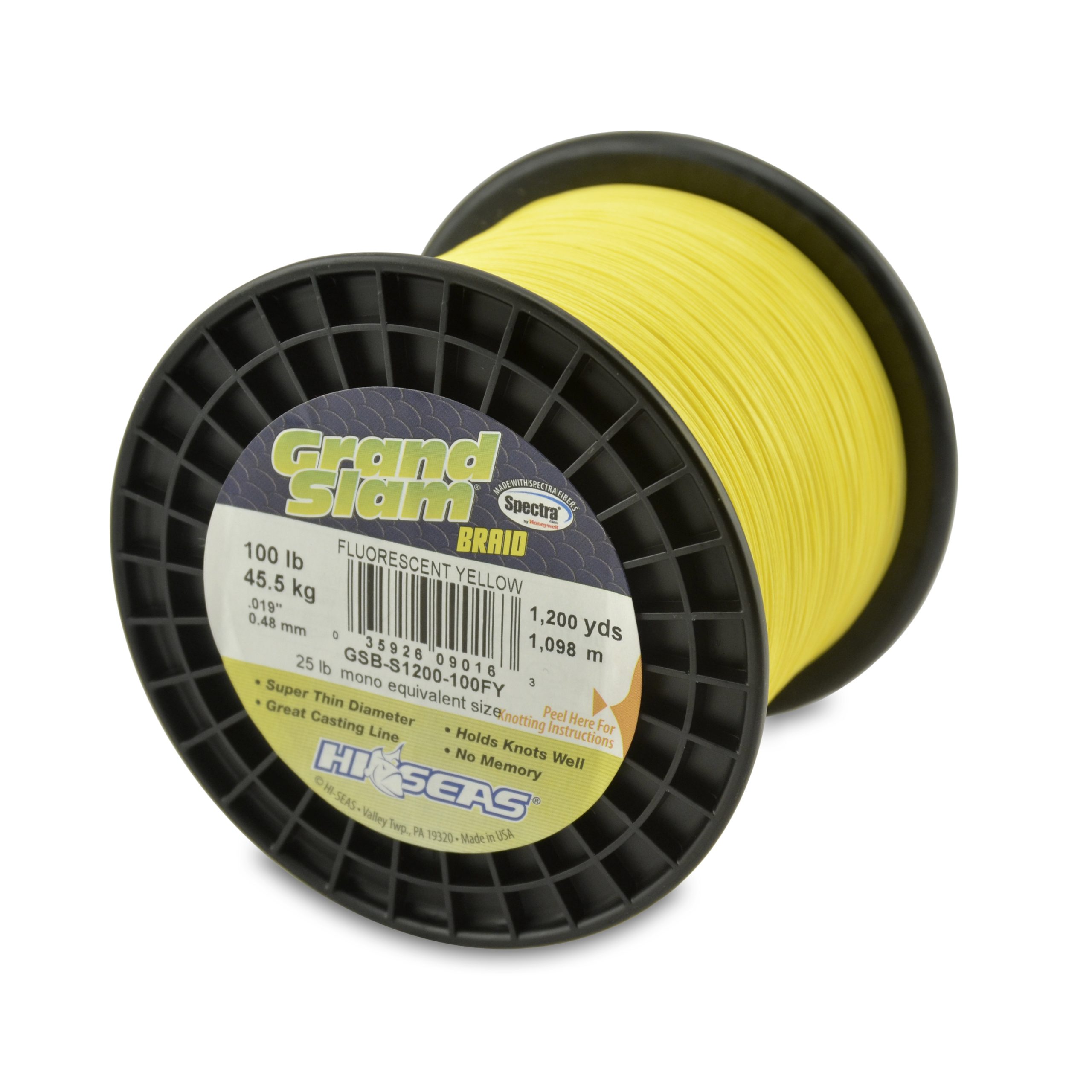 Braiding Spectra under extreme pressure is a time-consuming process that costs more, but the benefits are evident from the first time you use it. Grand Slam Braid is thinner, rounder, and packs more uniformly on spinning and conventional reels. The line will not bury in reels, knots are stronger and don’t slip, and abrasion resistance is greatly enhanced.