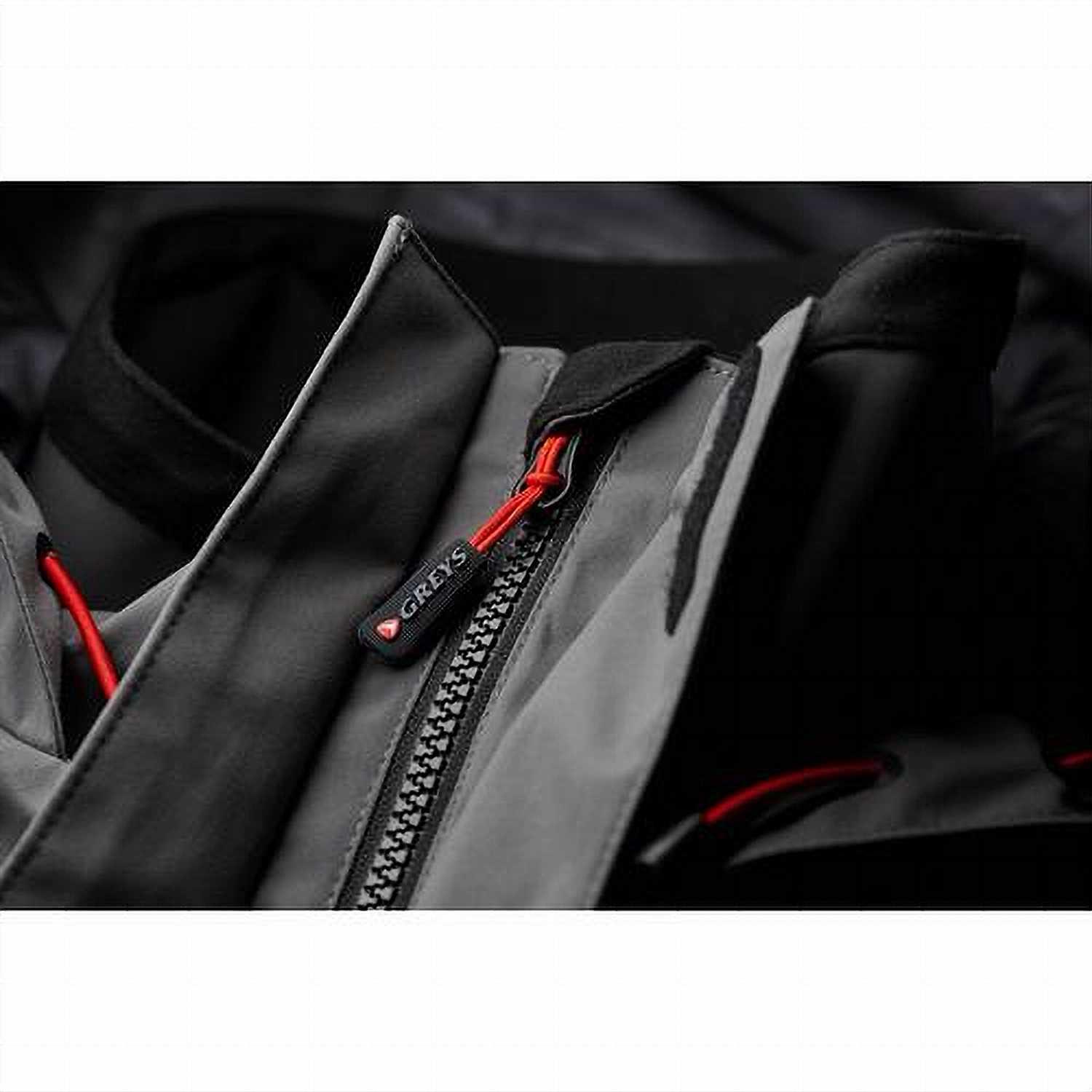 The Greys Tital wading jacket is the top-of-the-range model that brings the ultimate in weather protection and features. The 15,000mm membrane is the best membrane in the entire Greys range and offers great waterproofness and very high breathability of 5,000MVP. The three-layer nylon Oxford 160D provides the perfect combination of durability and comfort. The jacket houses two large chest pockets with flaps as well as two vertical pockets for leader materials or tools. The tool attachment point on the chest pocket is perfect for attaching your unhooking plier when not in use. The cuff sleeve is a perfect solution for keeping wind from going up your sleeve. On the back, you will find a large chest pocket with drain holes for when you are wading deep.