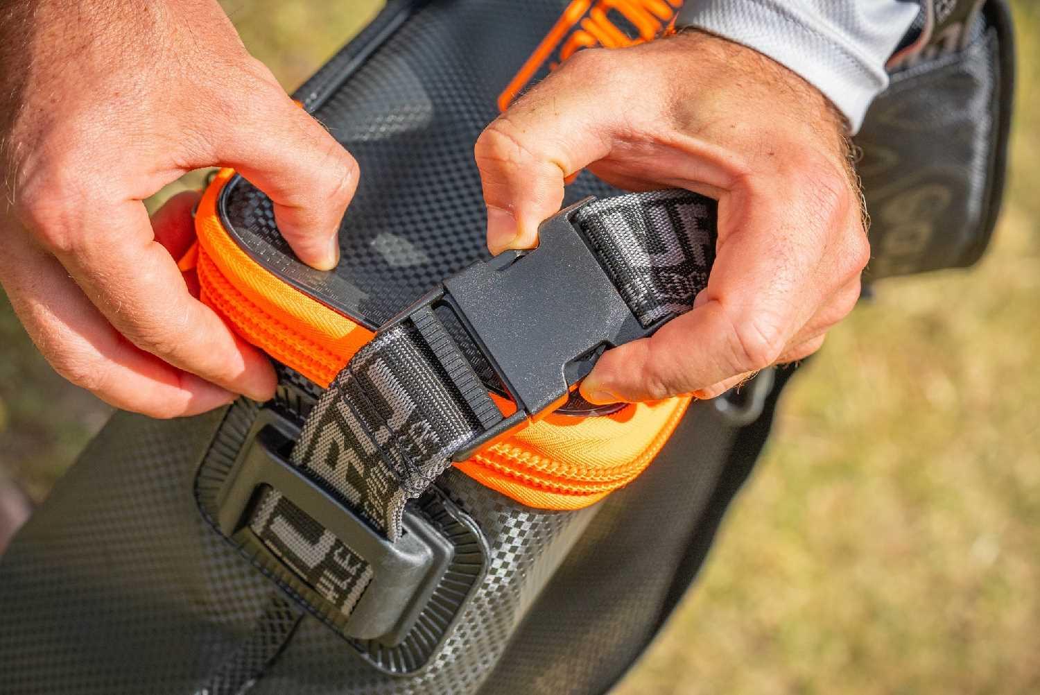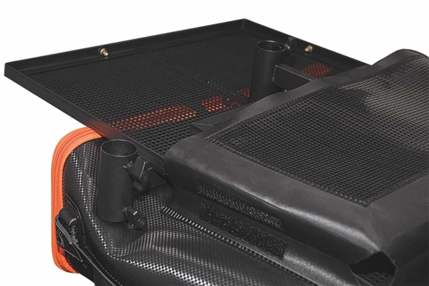 Velcro-adjusted front pocket – ideal for bait trays, riddles etc, holding most extra-large side trays.