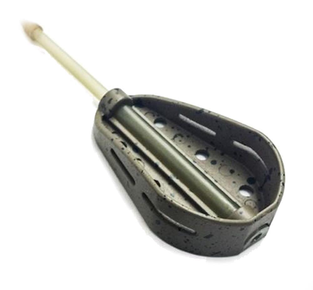 Guru Inline Large Hybrid Feeders 28g , 45g & 55g These new hybrid feeders from the guys at Guru are exactly what the name suggests. The are a mixture of a method feeder, banjo feeder, and a pellet feeder, but with added holes on the bottom and side to help push the bait out. Supplied as an inline system, the central inserts can be removed and replaced with the Guru X-Safe inserts to make a totally safe system. They are manufactured from a new type of material, so the weight is actually in the feeder itself and also means that they are very strong, so you will not get any splitting as you do with other types of feeder. The large 28g , 45g & 55 gm Hybrid feeders are great for fishing for larger carp at distances. Believe me they cast superb. Product measurements: Stem-9.5cm, Feeder Base-5cm, Width-3cm Features Include, •New advanced feeder design.•Quick to load.•Weight-forward design helps accurate casting.•Holes are located for rapid bait release.•Commercial camo finish.•Mini size is perfect for when you don’t want to over feed.•Perfect for softened 2mm, 4mm, and 6mm pellets, as well as groundbait.•Compatible with Guru X-Safe elasticated stems.