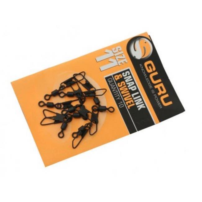 The GURU size 11 swivel with snap link are designed for Allowing the quickchange set up of any feeder, straight lead or waggler rig.