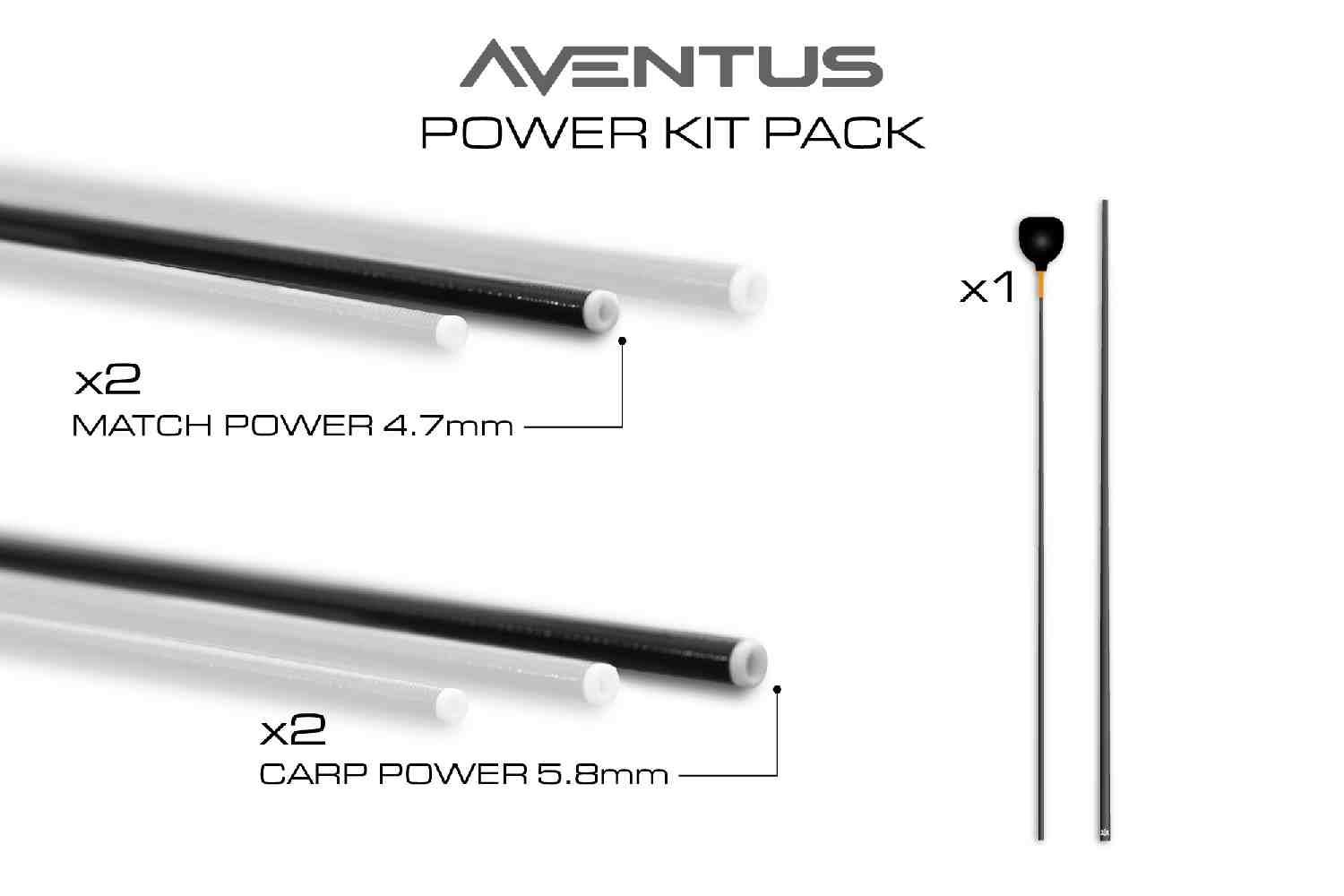 The Power Kit Pack comes supplied with two 4.7mm Zero 400 two-piece 2.4m long top kits that are ideal for most carp and F1 pole fishing when a full top kit is required. The two thicker bore 5.8mm Carp Power kits again 2.4m in length are more suited to thicker elastics and bigger fish demands. Finishing off the Zero400 Power Kit Pack is a super strong cupping kit which comes at the exact same length as the Match and Carp Power kits for improved accuracy and performance.