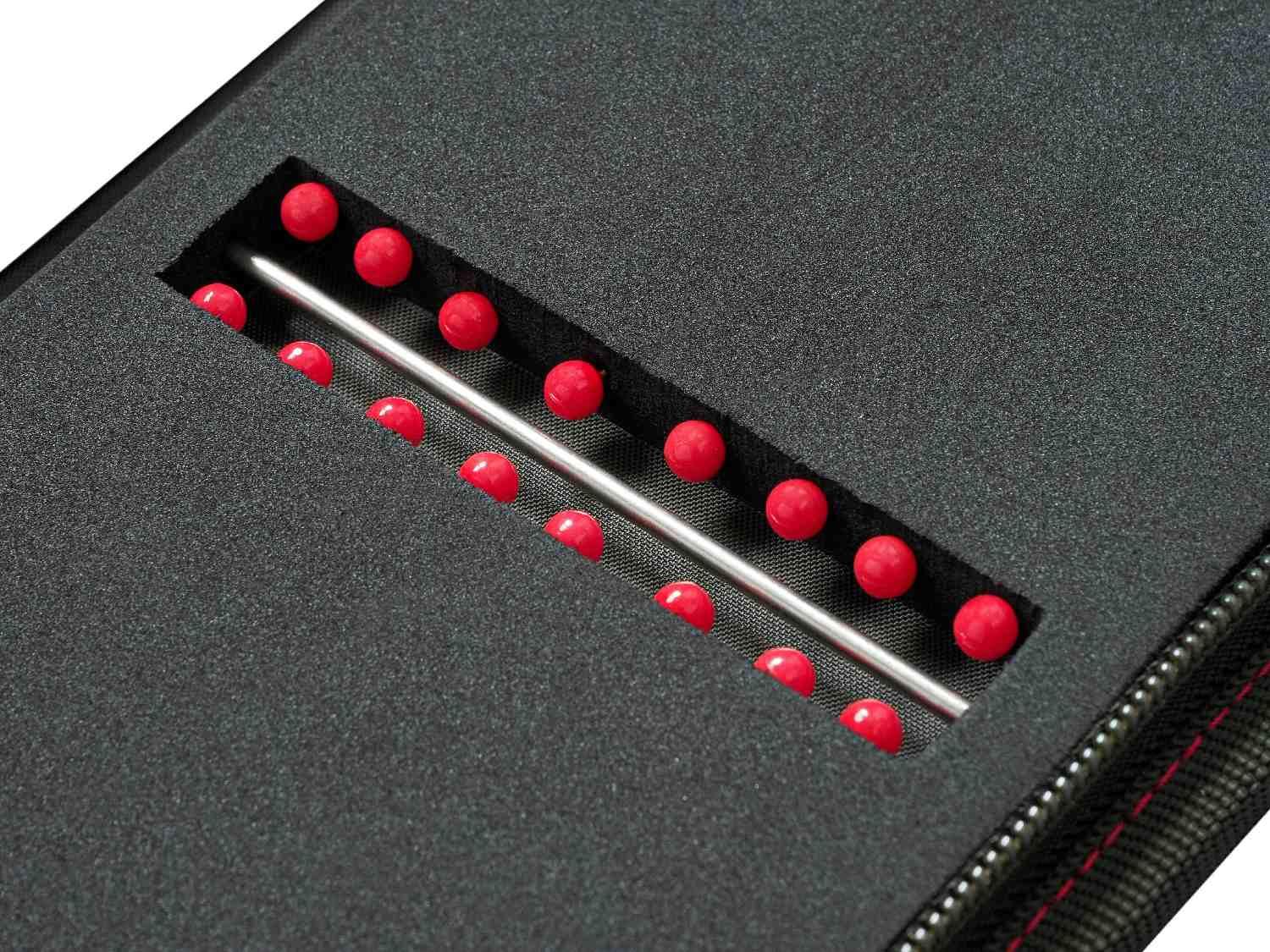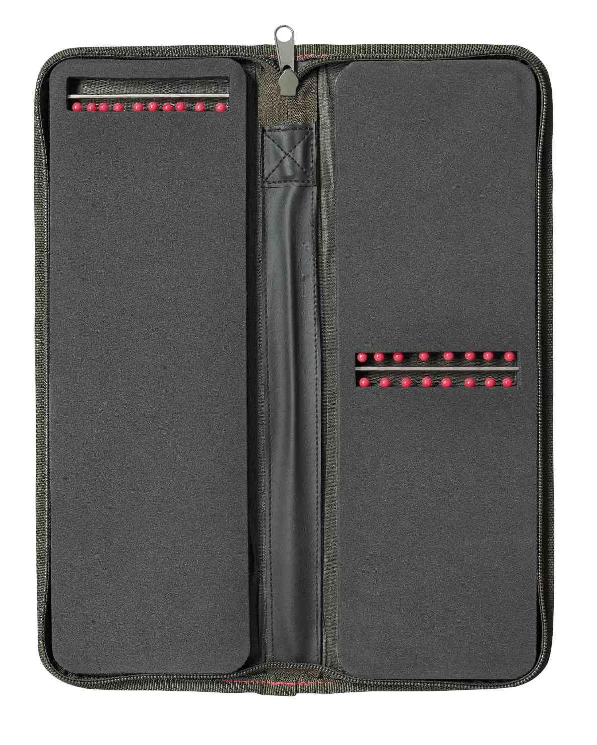 The Stiff Rig Wallet is a durable and secure zipped case for storing your ready-made rigs. This wallet is built from durable and tough material that is dirt and water repellent for protection and to help keep your rigs stored safely. To keep all your rigs organised inside, there are fixation pins and these will also help keep your rigs in place, especially when in transport. The Rig Wallet is secured shut and opened using a zip for added protection and is green in colour featuring the JRC branding throughout.