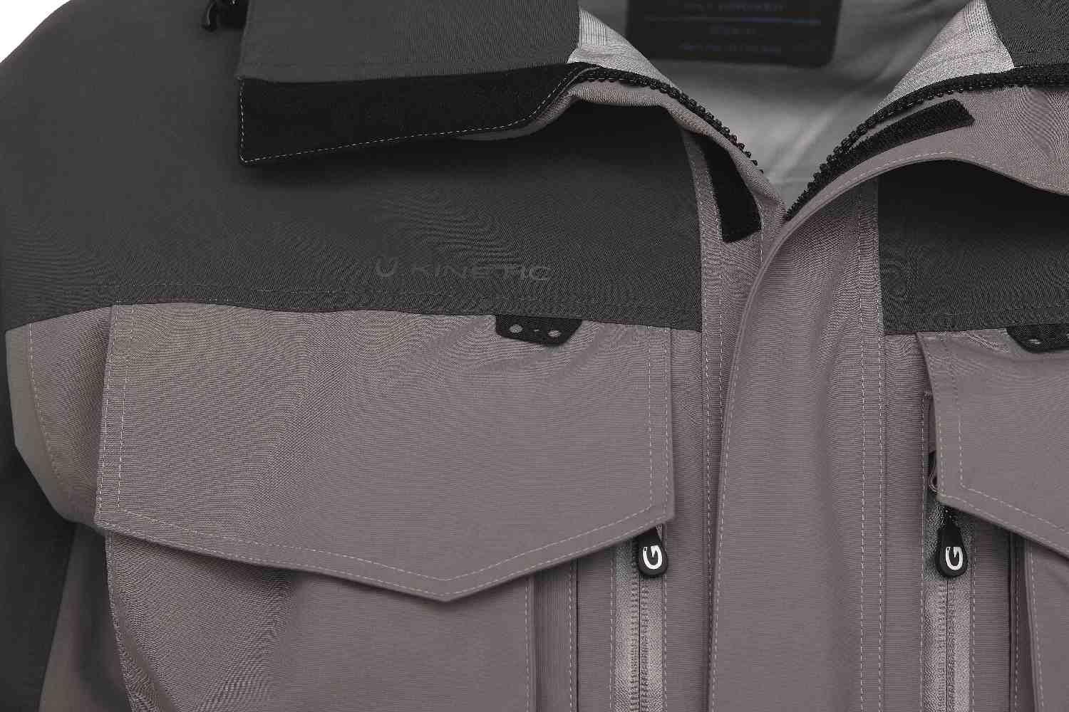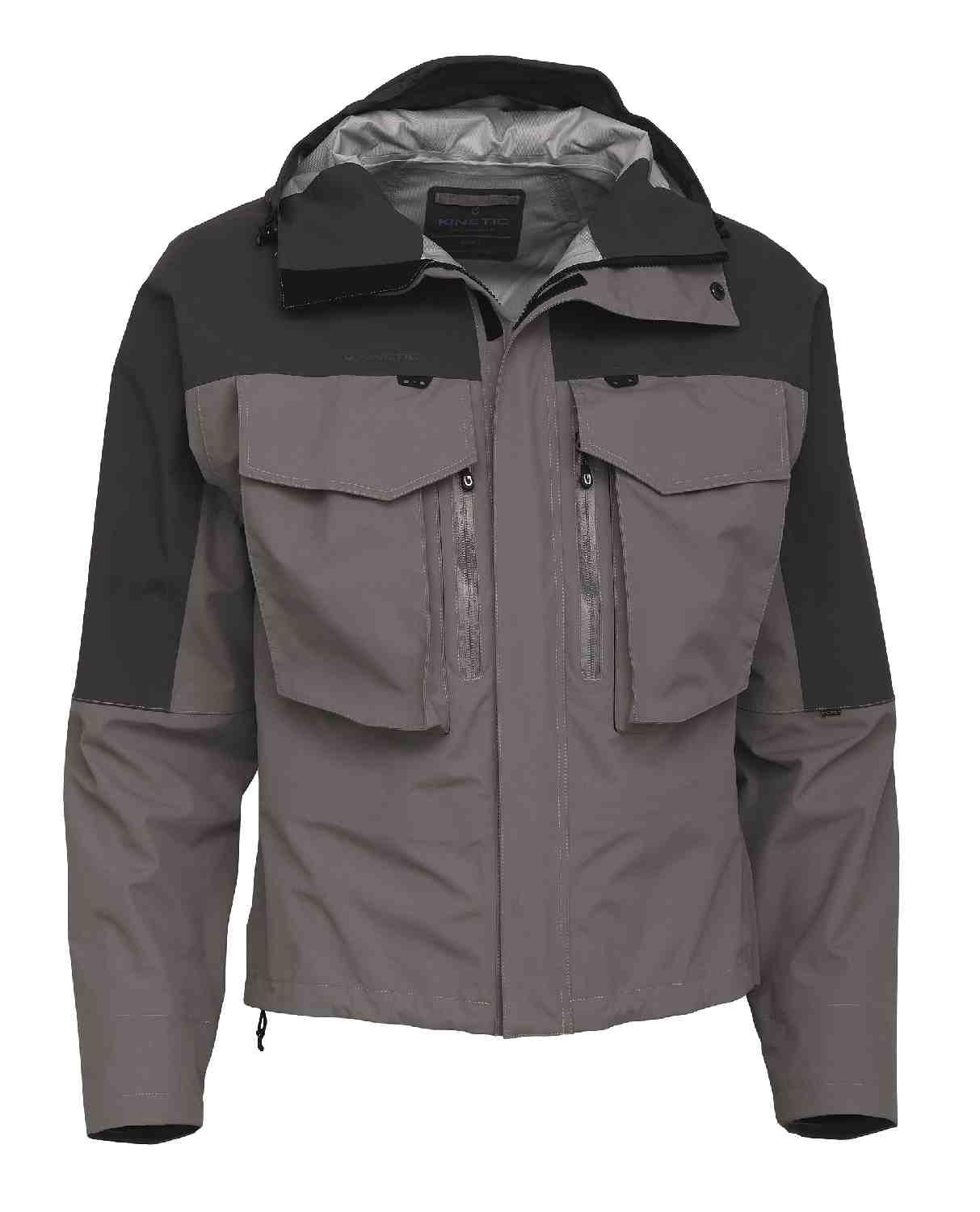The Kinetic X3 wading jacket is designed to give you guide-class functionality and 100% weatherproofing with breathable comfort. The X3 jacket has four zippered chest pockets to stash lures and flies, and two fleece lined handwarmer pockets at the waist. Also features adjustable hood, D-ring on back, rubberized tabs for tool docking, draw-cord adjustable bottom hem, and elastic cuffs with hook and loop closure adjustments.