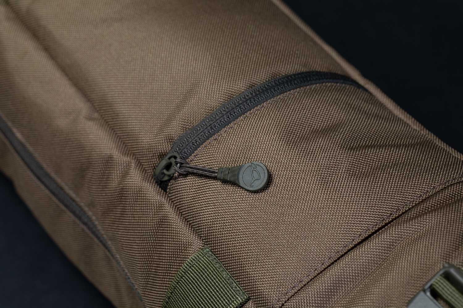 The holdall has been thoughtfully crafted to accommodate both standard and reduced length handled rods. It offers enough space to accommodate even the largest of reels and a small pocket is located on the side to store leads after your session.