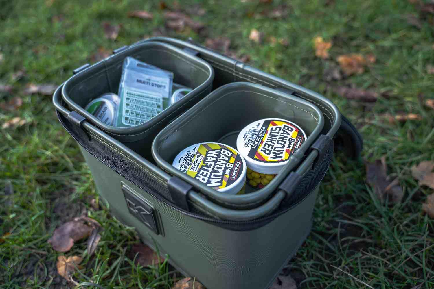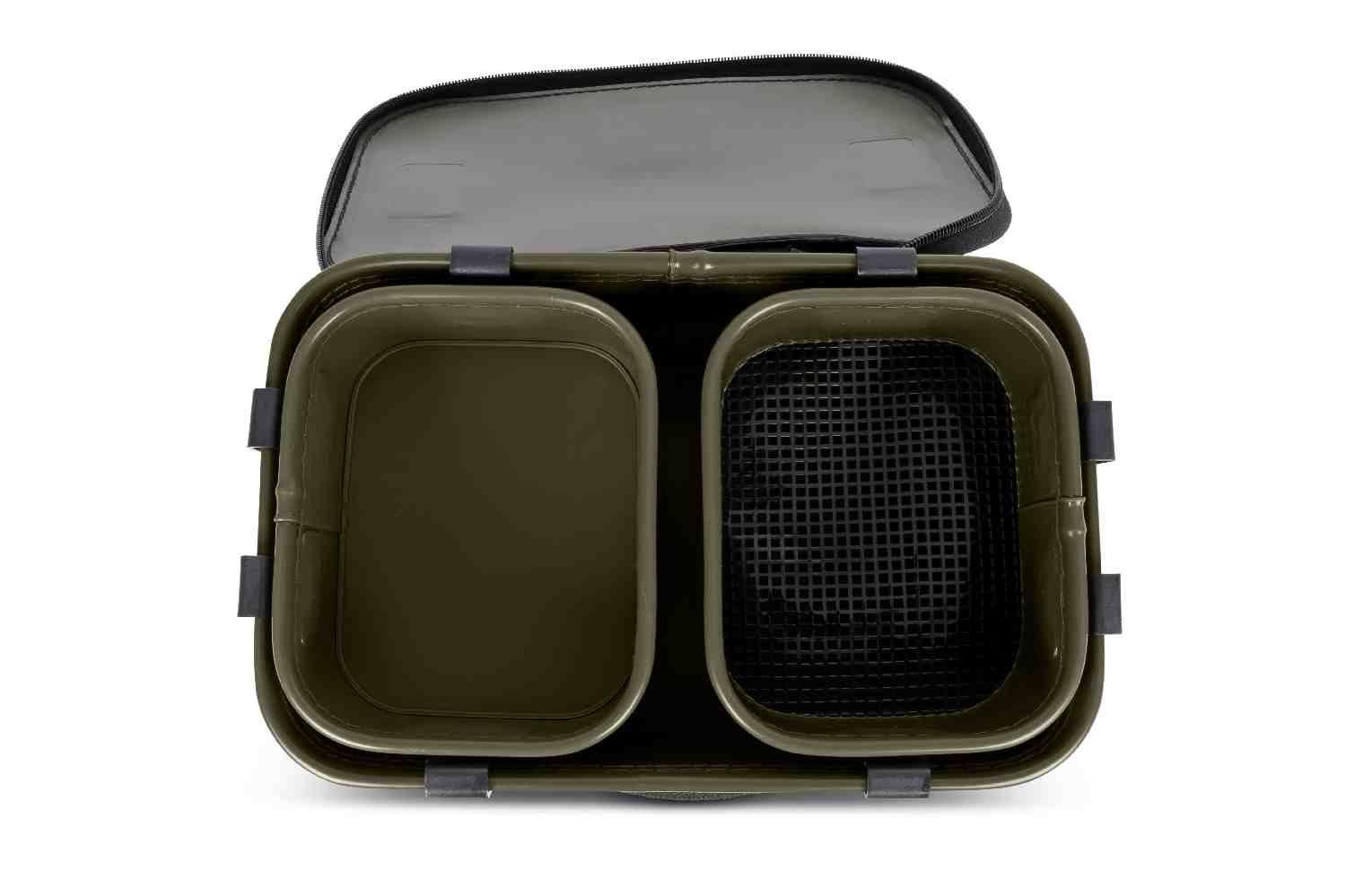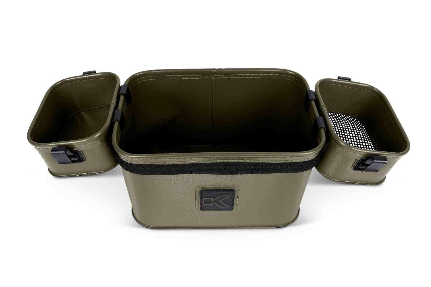 This EVA Bait Station provides fantastic storage for roving anglers. Comes with two internal trays, one of which features a 3mm mesh for riddling naturals and groundbaits. These can be clipped to the outside of the bag during use, giving a large workspace.