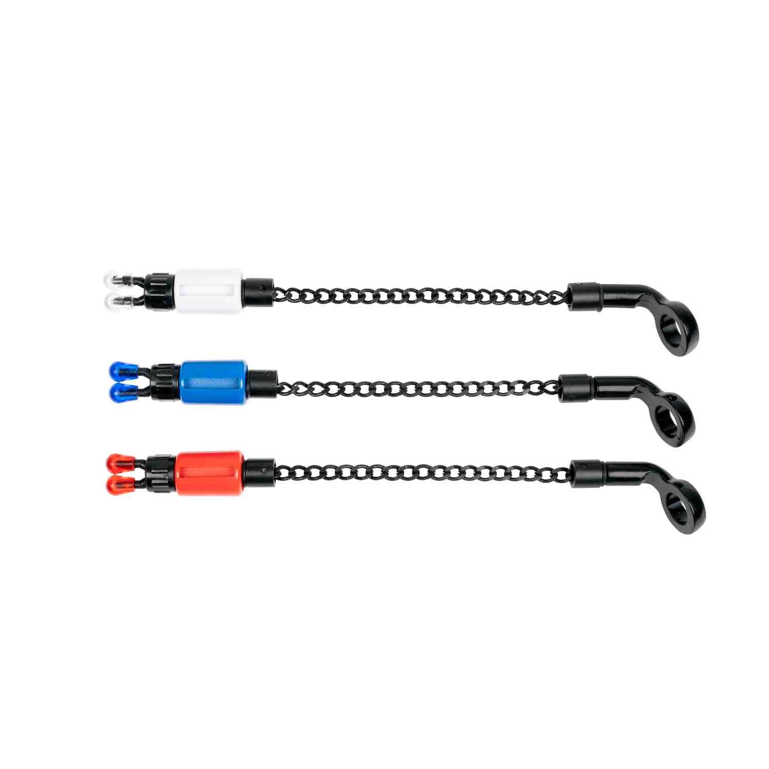 The KRI alarm and bite indicator set contains three alarms, three bite indicators and a wireless bite alarm receiver. Alarm LEDs and bite indicators are Red, White and Blue. The KRI alarms feature integral Snag Ears, that can be adjusted whilst fishing and during transit. The KRI is compact, rugged and reliable. Featuring a sensitive hidden roller wheel and a bright LED, it’s a fantastic choice for all forms of specimen angling. The speaker features adjustable volume, while the LED boasts a 10 second alert feature. The receiver boasts a long wireless range, on/off switch and volume control. When used in conjunction with the alarm heads, it’s a top-quality combination that’s not going to let you down. Up to 100m tranmission range. Alarm requires a 9V battery for longer useable lifespan. Receiver uses 3 x AAA battery.To pair an alarm to the receiver, follow these instructions.Ensure all alarms, and receiver are turned off.1. Hold down both buttons on the receiver until it turns on and the red LED illuminates.2. Turn on relevant alarm and roll roller until it beeps, and the receiver goes to the next colour.3. To skip colours on the receiver press volume button.4. Receiver will turn off once last alarm paired.