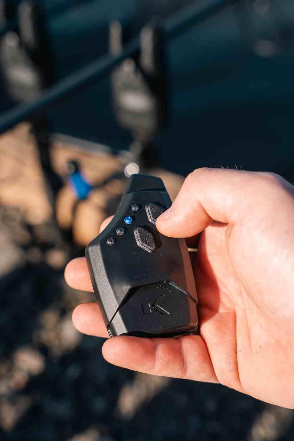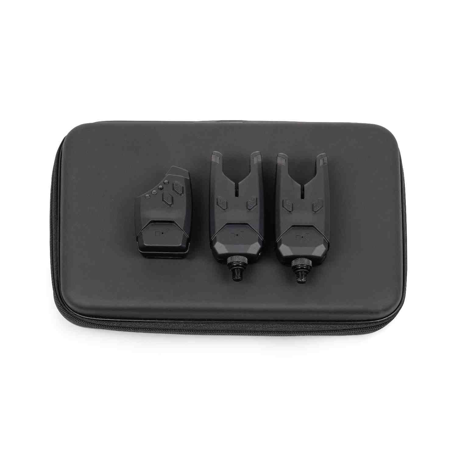 The ultimate alarm set! All alarms come with custom fit covers and a superb EVA case for storage. Premium sensitivity levels are offered by the KSi8 Bite Alarm. With eight sensitivity, tone and volume options, you can fine tune the alarm for optimum bite indication regardless of the species or method used. The compact soft-touch outer design with deep U rest provides great security, whilst the adjustable 3/8 screw thread and O Ring makes it easy to line up your alarms when fishing with buzz bars or rod pods. Adjustable volume and tones. High output speaker features rain-hood design. Features latching LED to show both forward runs and drop backs. Has low battery warning feature. Indicator takes 2 x AAA batteries. (Batteries not included.) LED: Blue.