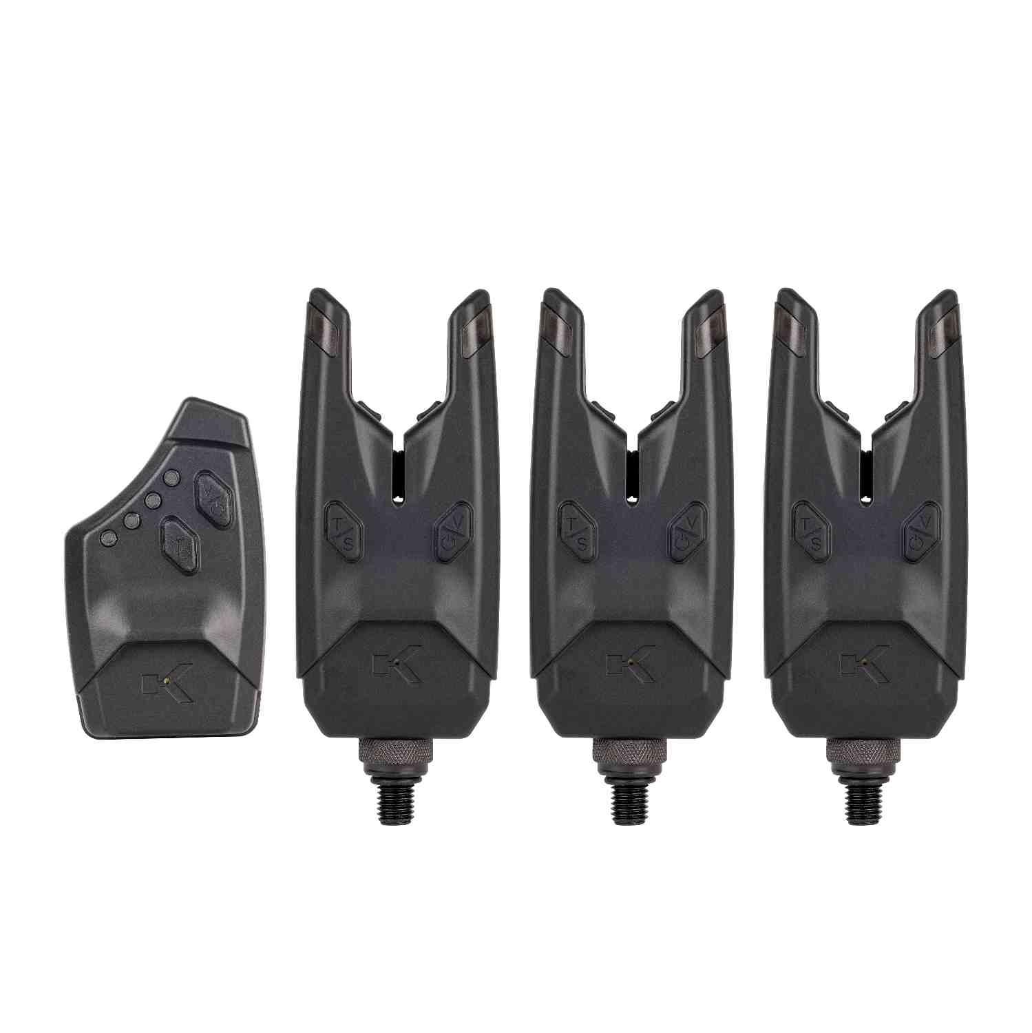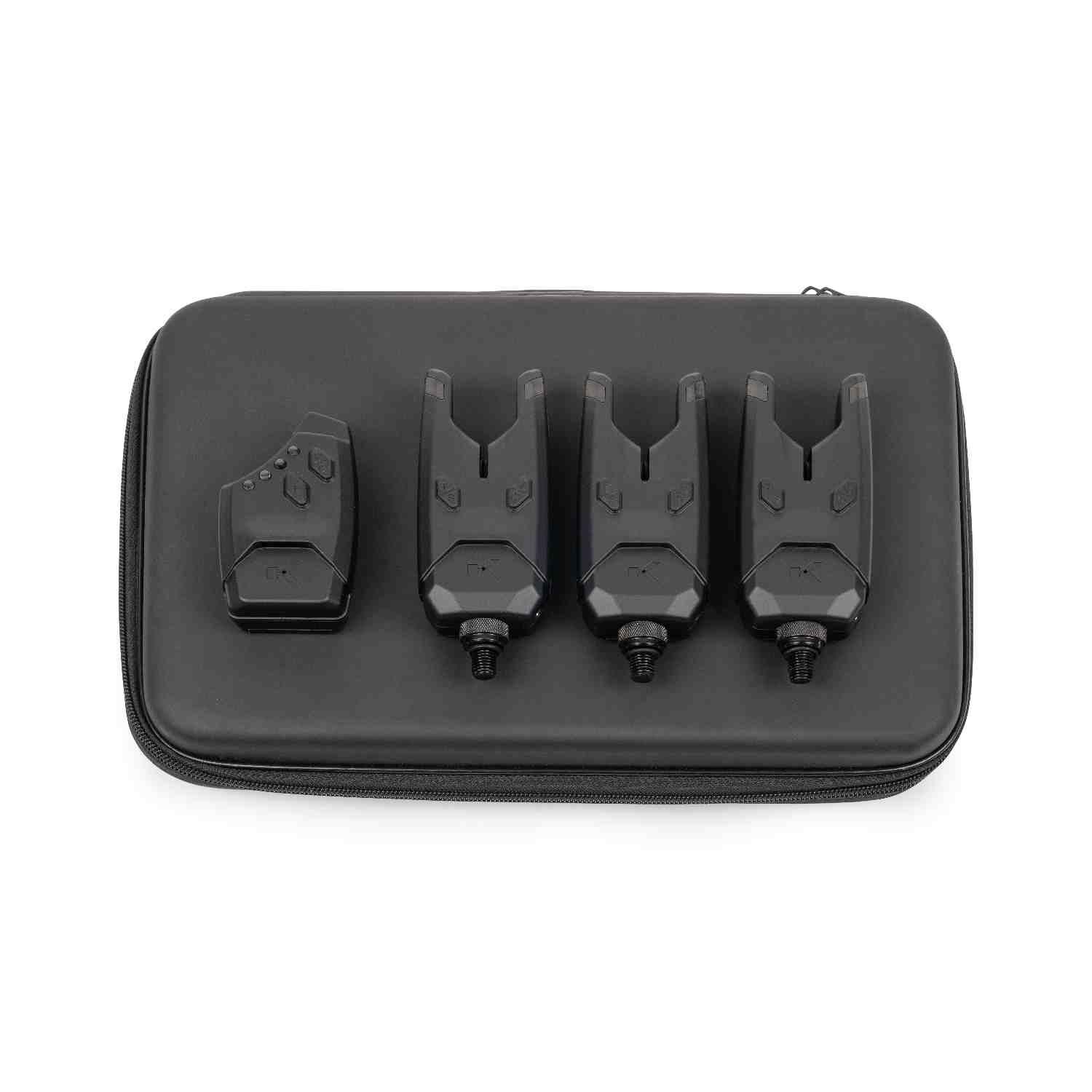 The ultimate alarm set! All alarms come with custom fit covers and a superb EVA case for storage. Premium sensitivity levels are offered by the KSi8 Bite Alarm. With eight sensitivity, tone and volume options, you can fine tune the alarm for optimum bite indication regardless of the species or method used. The compact soft-touch outer design with deep U rest provides great security, whilst the adjustable 3/8 screw thread and O Ring makes it easy to line up your alarms when fishing with buzz bars or rod pods. Adjustable volume and tones. High output speaker features rain-hood design. Features latching LED to show both forward runs and drop backs. Has low battery warning feature. Indicator takes 2 x AAA batteries. (Batteries not included.) LED: Blue.
