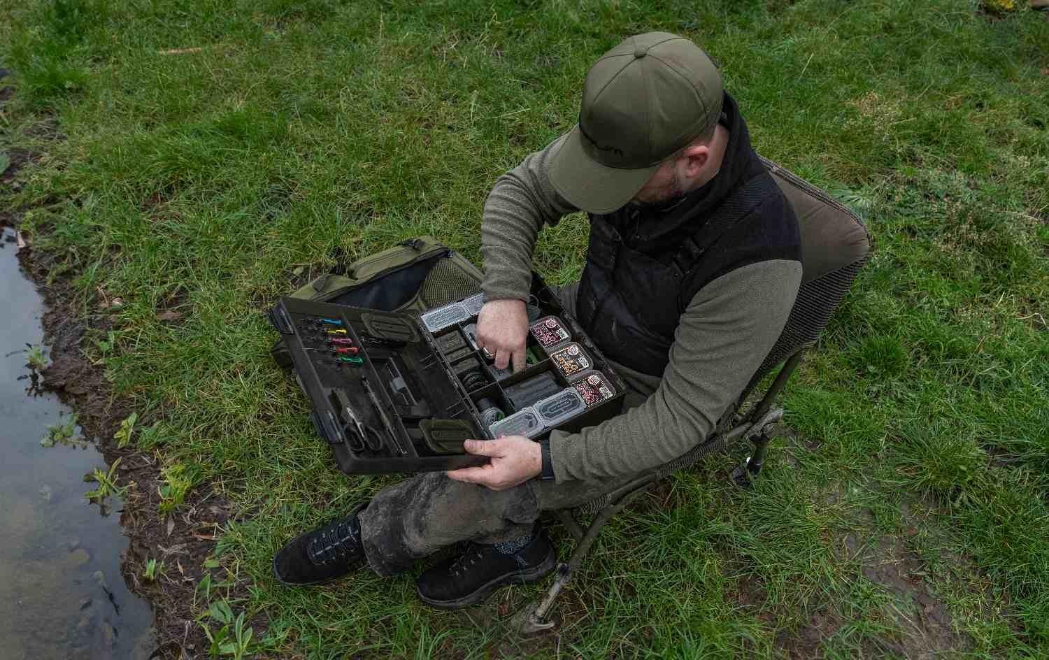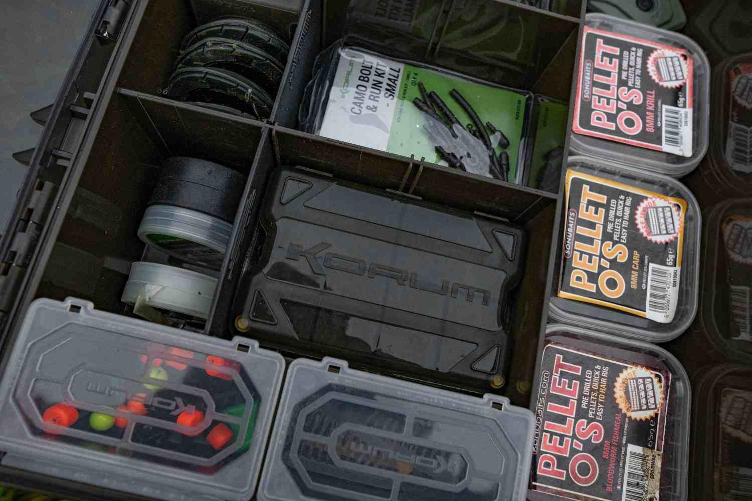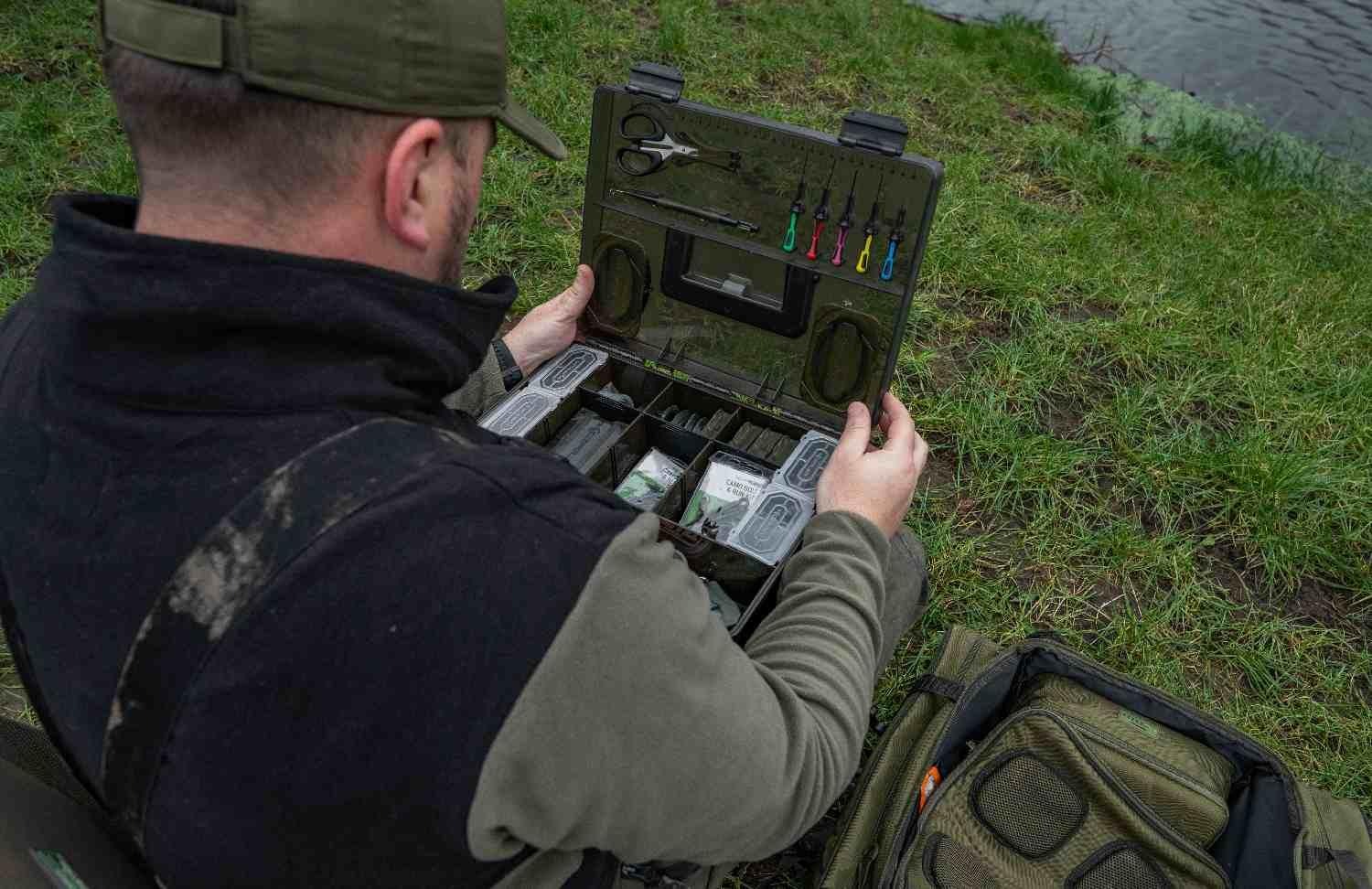 An XL total tackle station! Your perfect bankside companion, keeping all your terminal tackle, tools and rigs in one super solid tackle box unit. We’ve carefully sized BLOX to house must-have items of end tackle, like spools of line, packets of hooks and accessories. Your Baiting Tools, Disgorger and Scissors all click into place neatly, whilst the main box can be adjusted with dividers to suit your needs. The lid also houses two shallow RIG BLOX inside, keeping all your pre-tied hooklengths safe from the elements. Comes with a durable, captive carry handle, side grab handle, secure clips and gasket. Also including is a length measurement for tying rigs. Box size W36 D26 H11.5cm. Includes: