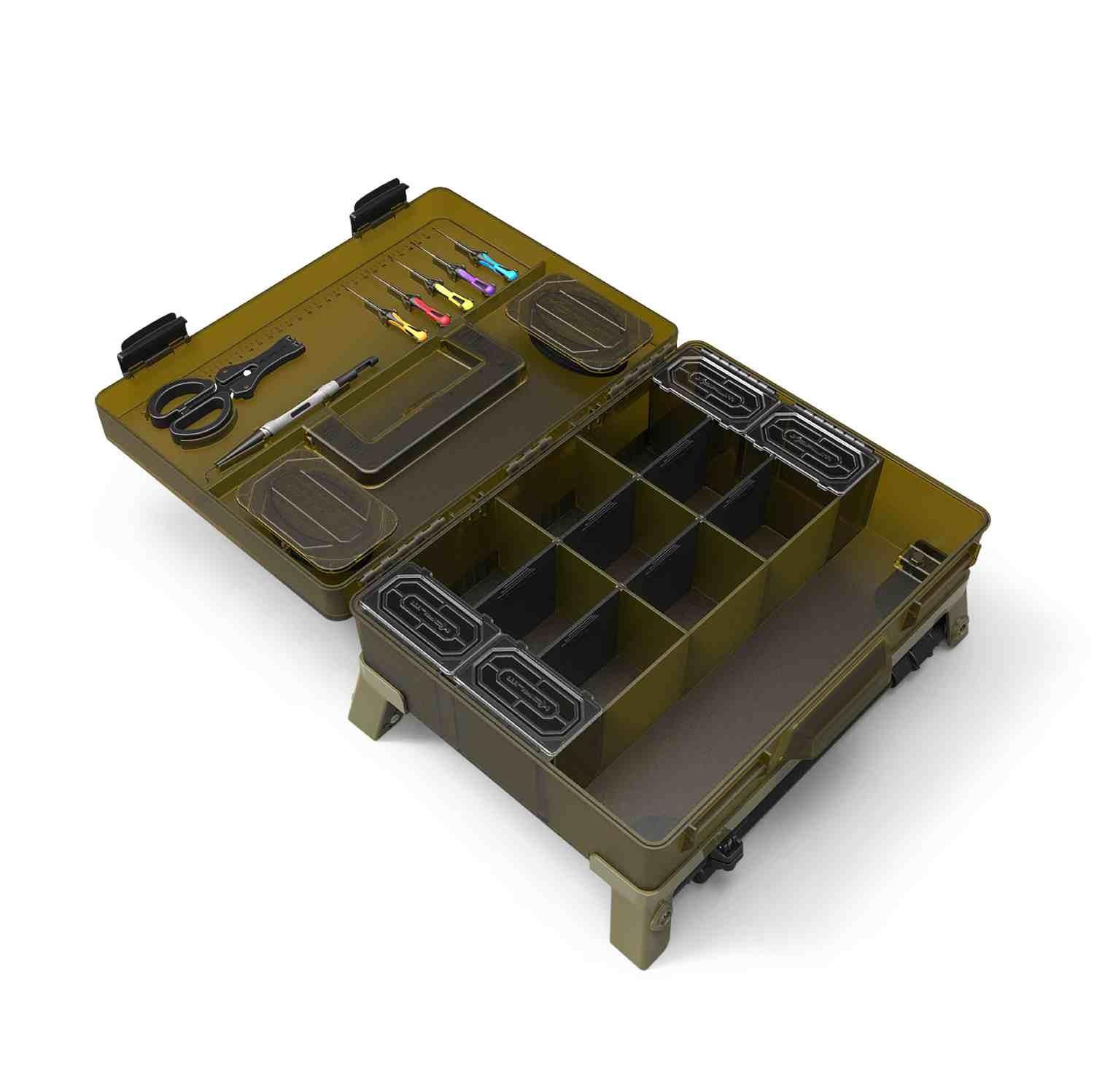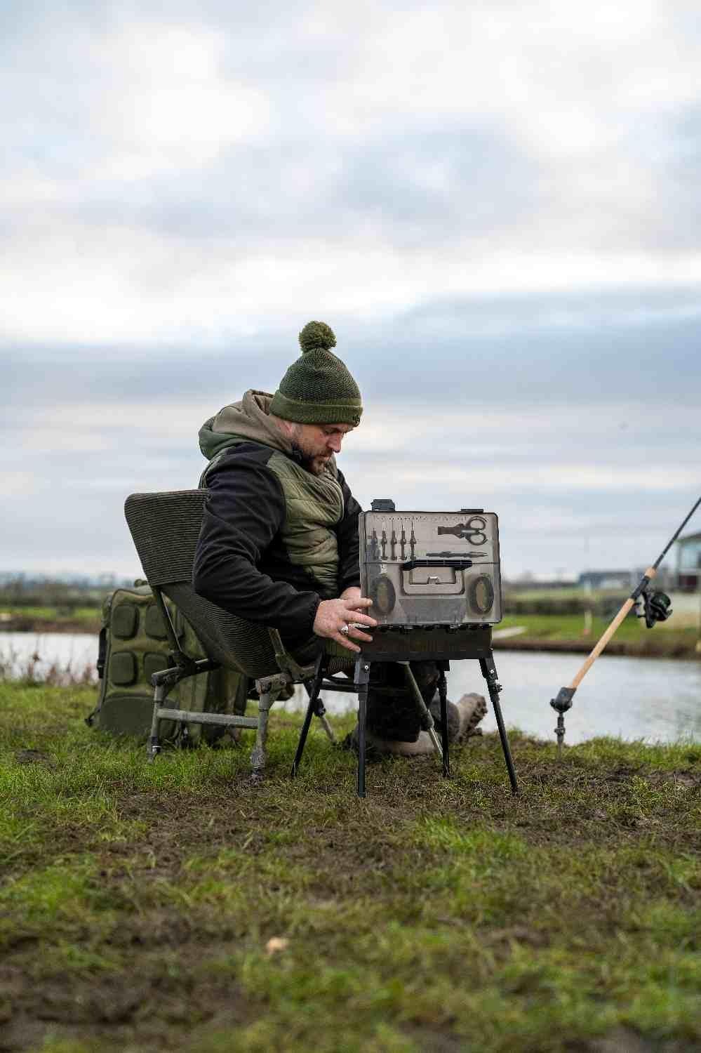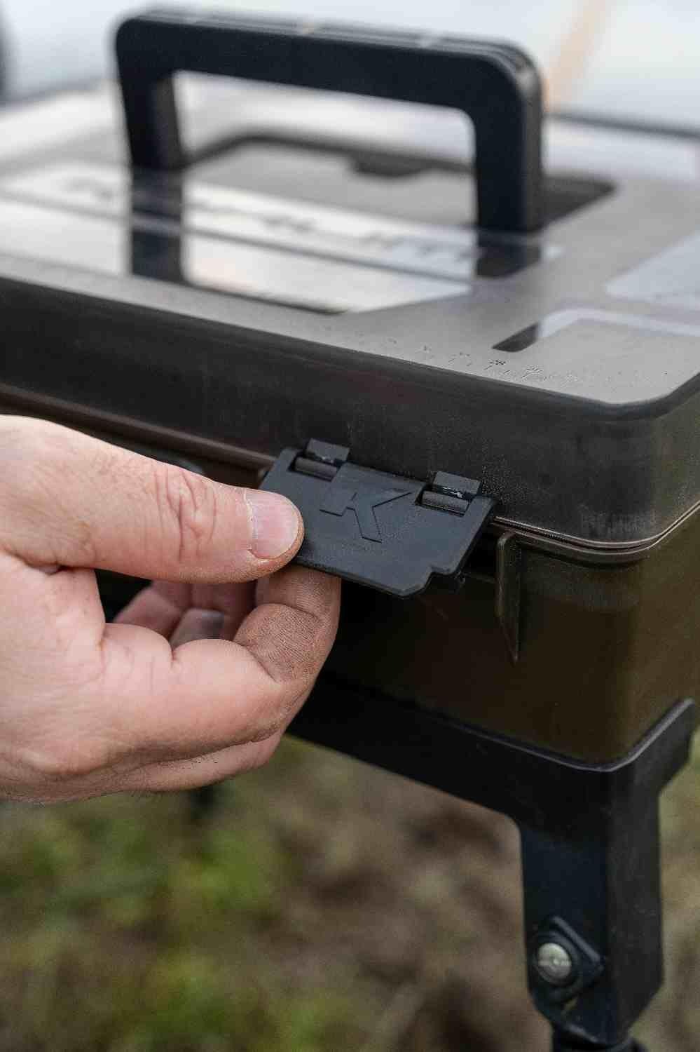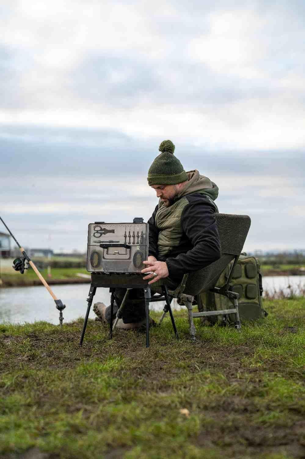 A freestanding total tackle station! Your perfect bankside companion, keeping all your terminal tackle, tools and rigs in one super solid tackle box unit. We’ve carefully sized BLOX to house must-have items of end tackle, like spools of line, packets of hooks and accessories. Your Baiting Tools, Disgorger and Scissors all click into place neatly, whilst the main box can be adjusted with dividers to suit your needs. The lid also houses two shallow RIG BLOX inside, keeping all your pre-tied hooklengths safe from the elements. Comes with telescopic legs, enabling you to have the unit in reachable distance when fishing from a chair, or keeping you super organised when fishing from a shelter. Comes with a durable, captive carry handle, side grab handle, secure clips and gasket. Also including is a length measurement for tying rigs. Box size W36 D26 H11.5cm. Legs: H33-55cm. Includes:
