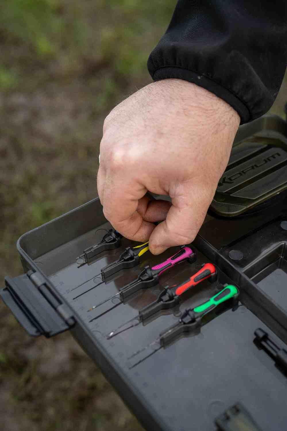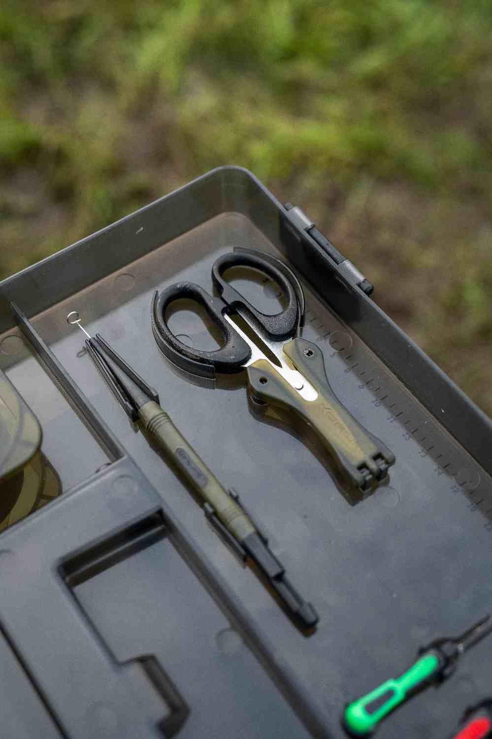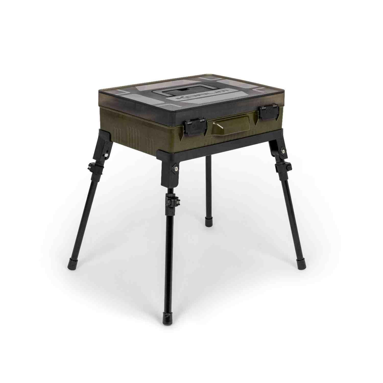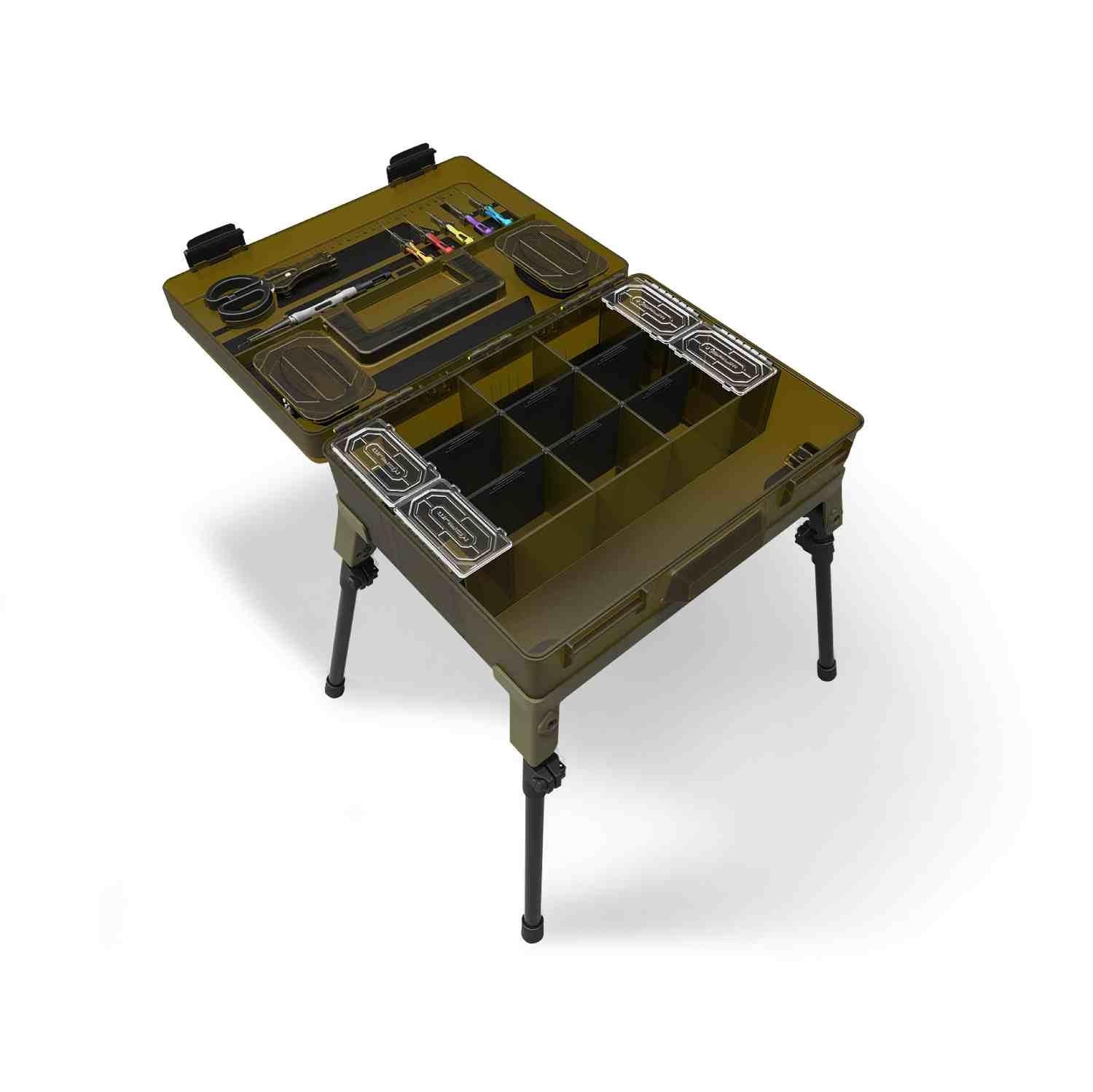 A freestanding total tackle station! Your perfect bankside companion, keeping all your terminal tackle, tools and rigs in one super solid tackle box unit. We’ve carefully sized BLOX to house must-have items of end tackle, like spools of line, packets of hooks and accessories. Your Baiting Tools, Disgorger and Scissors all click into place neatly, whilst the main box can be adjusted with dividers to suit your needs. The lid also houses two shallow RIG BLOX inside, keeping all your pre-tied hooklengths safe from the elements. Comes with telescopic legs, enabling you to have the unit in reachable distance when fishing from a chair, or keeping you super organised when fishing from a shelter. Comes with a durable, captive carry handle, side grab handle, secure clips and gasket. Also including is a length measurement for tying rigs. Box size W36 D26 H11.5cm. Legs: H33-55cm. Includes:
