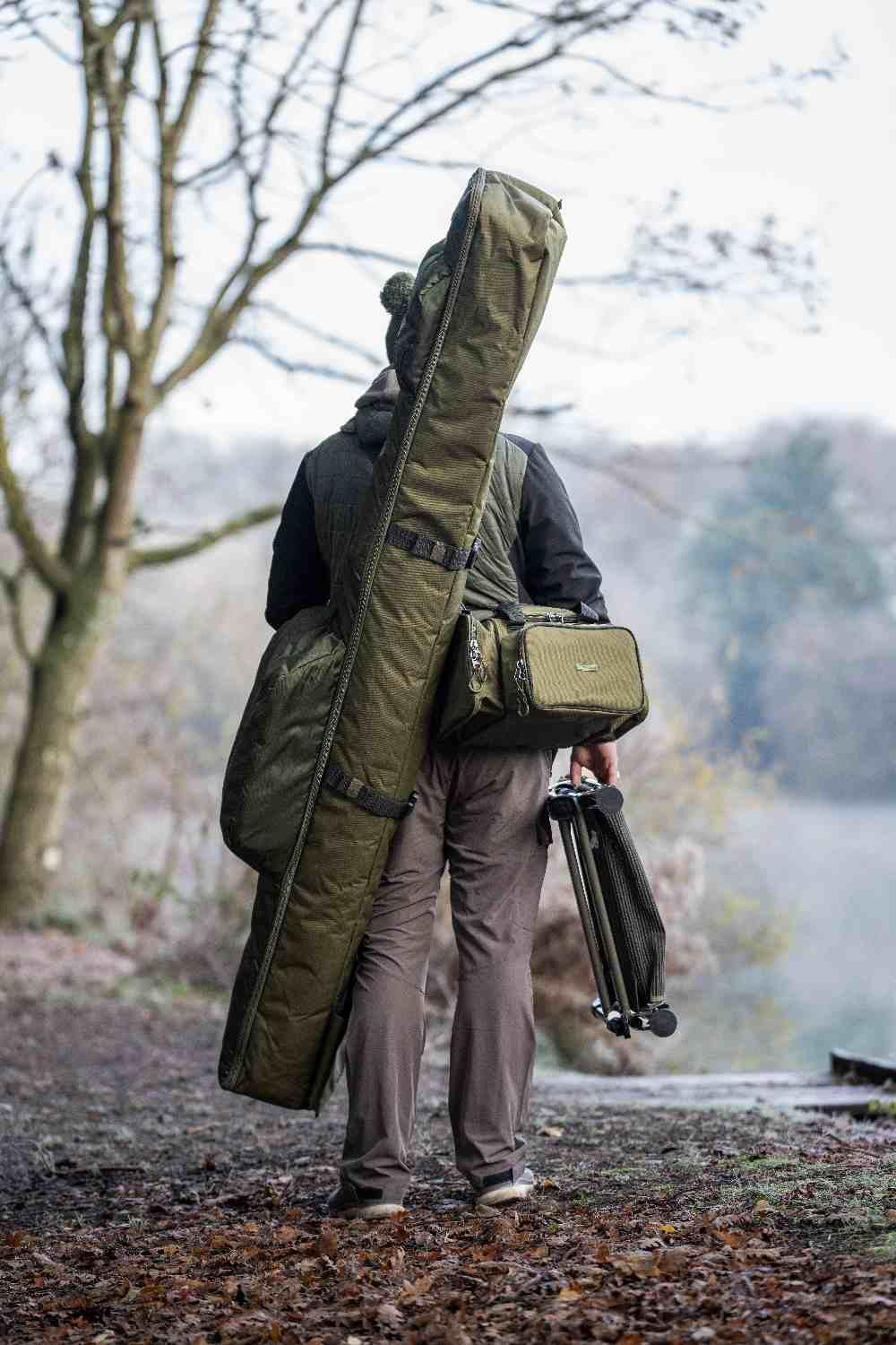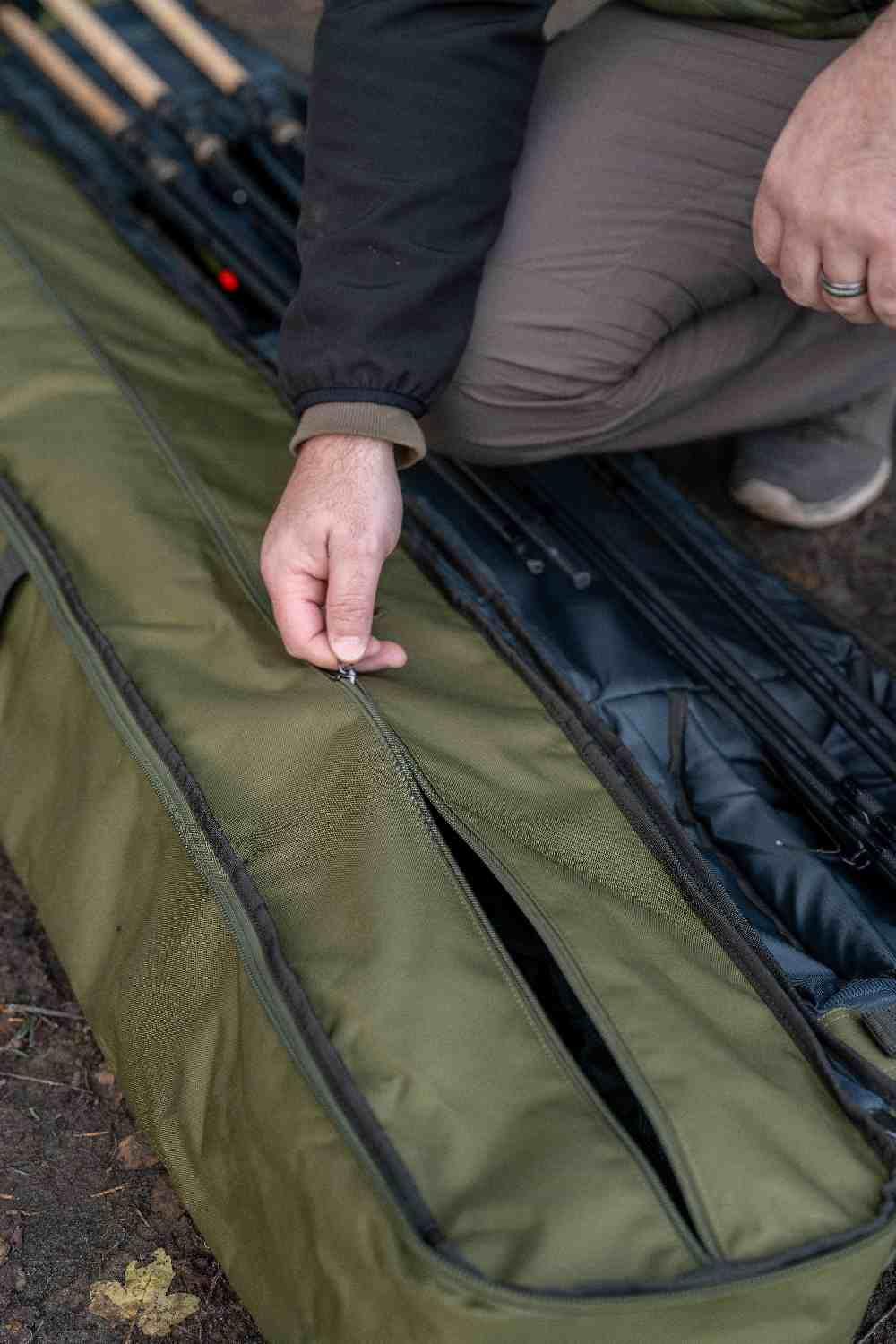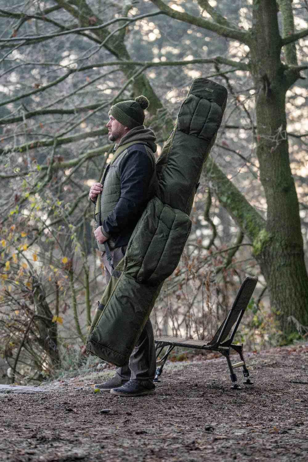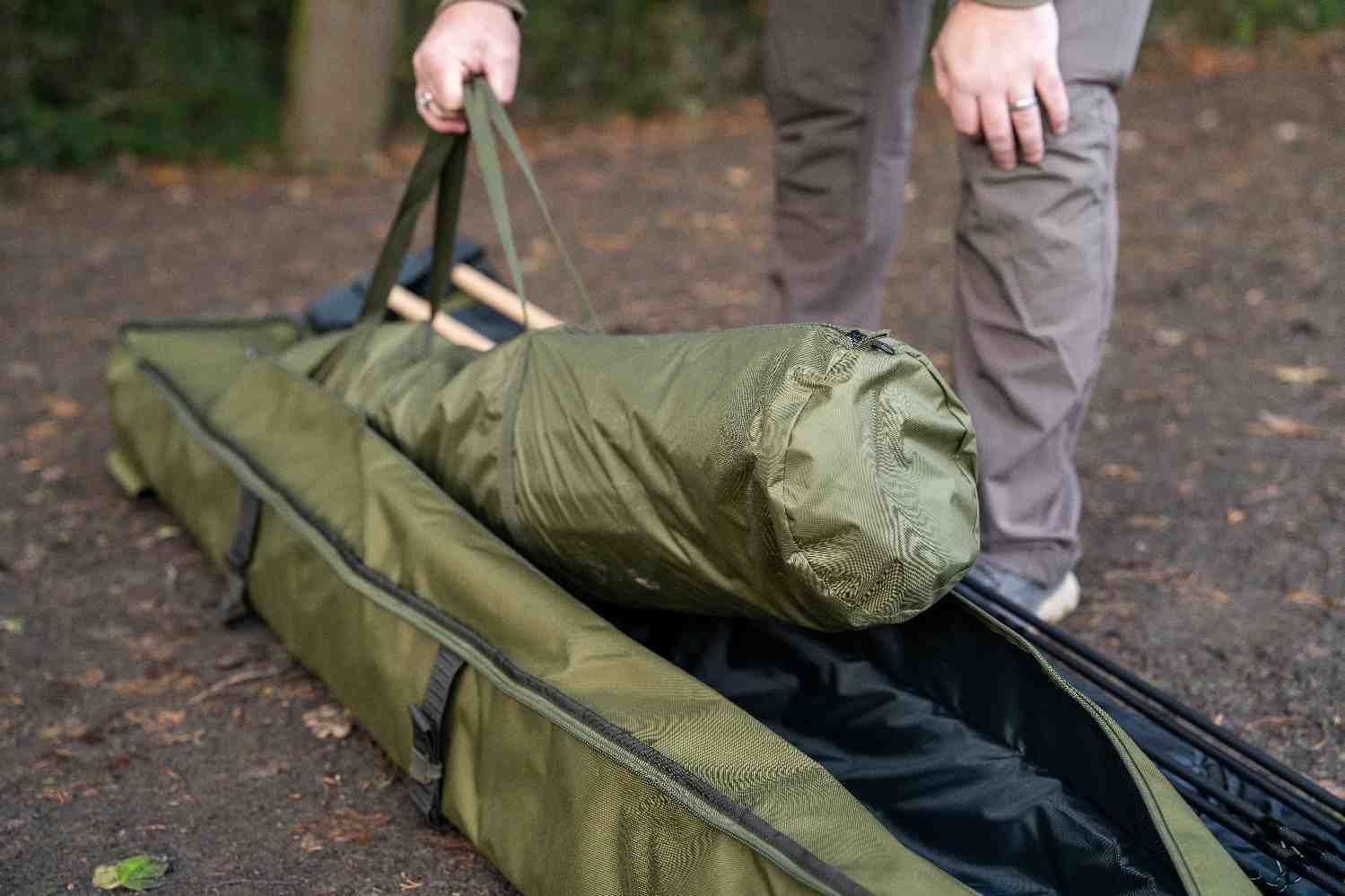An innovative new way to carry your loaded rods and reels, alongside your shelters, brollies and bankware. The compartment for your rods hinges away from the rear shelter compartment, providing all the benefits of a quiver with added rod protection. Has a generous padded area designed to house rods and reels comfortably, plus a larger rear compartment that fits all Korum shelters and brollies inside. Also features a simple outer pocket for nets, net handles or banksticks. There is also an outer quiver and strap facility, for wet items like shelters, tripods, and nets. Complete with removable and adjustable padded shoulder strap for comfortable transportation. All bags feature: