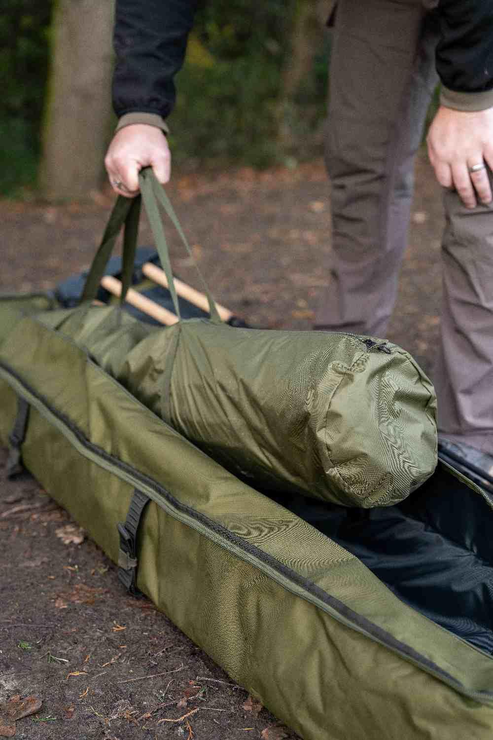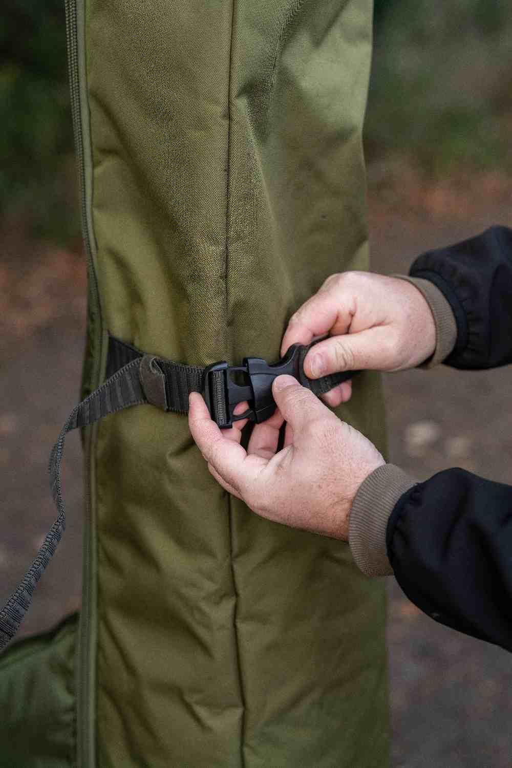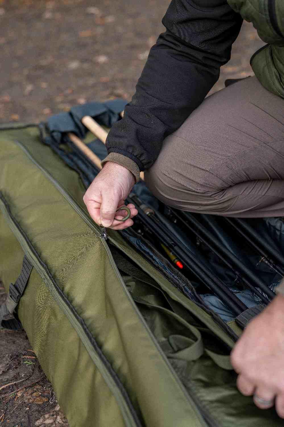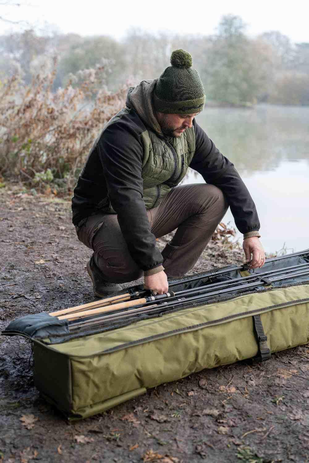 An innovative new way to carry your loaded rods and reels, alongside your shelters, brollies and bankware. The compartment for your rods hinges away from the rear shelter compartment, providing all the benefits of a quiver with added rod protection. Has a generous padded area designed to house rods and reels comfortably, plus a larger rear compartment that fits all Korum shelters and brollies inside. Also features a simple outer pocket for nets, net handles or banksticks. There is also an outer quiver and strap facility, for wet items like shelters, tripods, and nets. Complete with removable and adjustable padded shoulder strap for comfortable transportation. All bags feature: