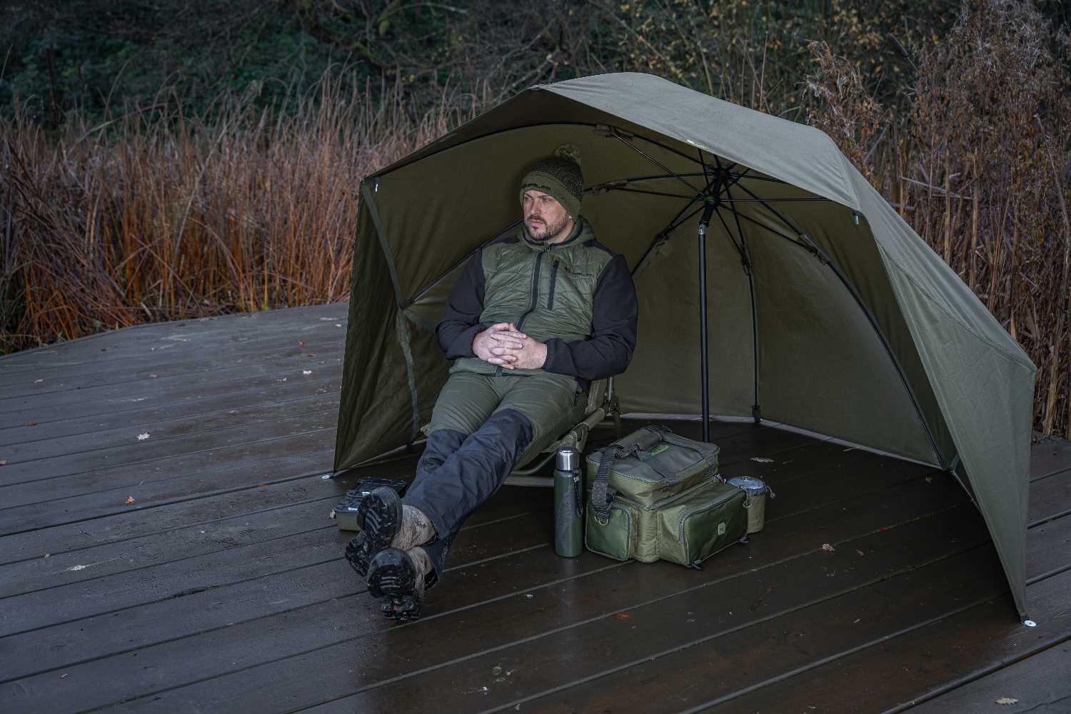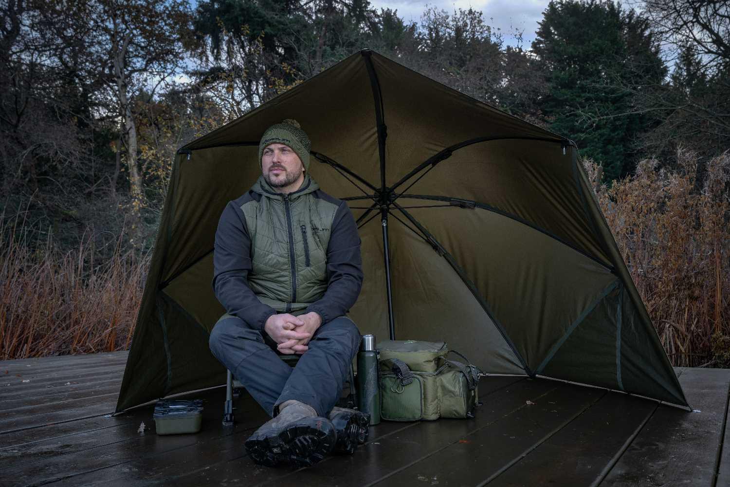The Progress Graphite Brolly Shelter uses a high-performance 150PU fabric boasting 5,000mm waterproof protection. Built on a strong, but lightweight 50″ graphite frame, this traditional style brolly is built to last.