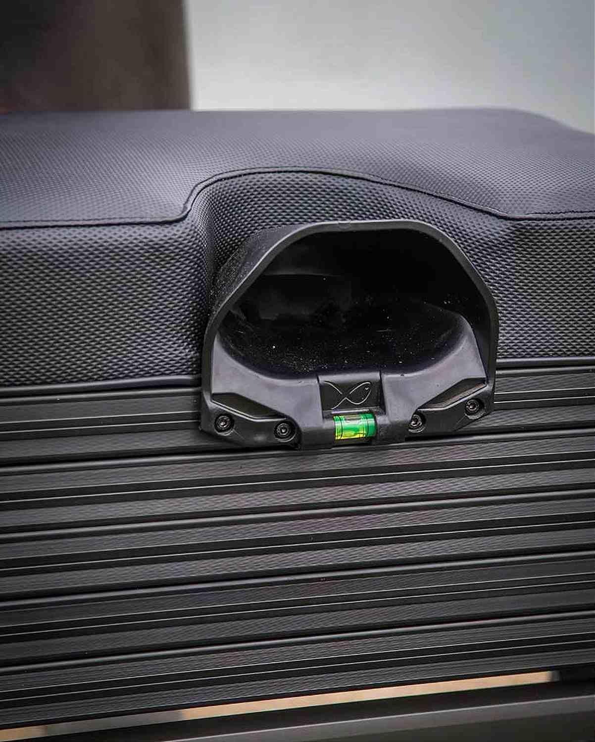 The Precision Setup: Use the built-in spirit level to ensure your box is perfectly flat on uneven, sloping banks. A level box prevents uneven wear on your legs and ensures your pole remains balanced.