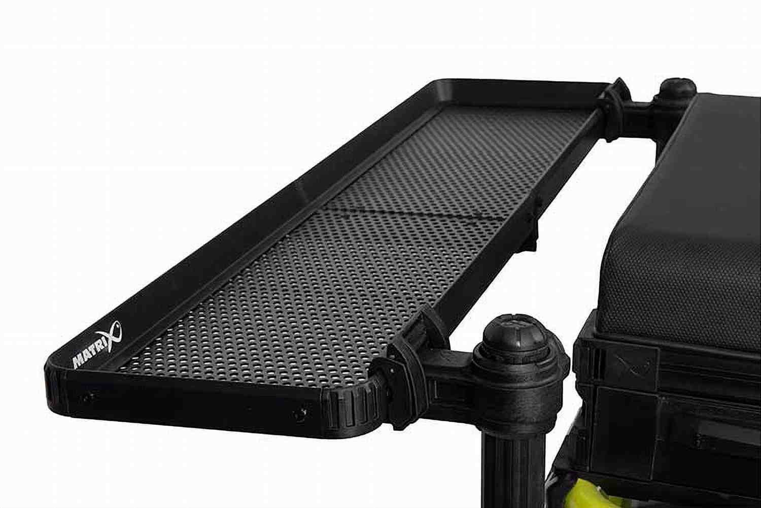 The Matrix Folding Side Tray Slim is the secret weapon for organized match anglers. Specifically designed to utilize the often-wasted space along the rear seatbox legs, this ultra-slim tray provides a dedicated home for your most important accessories without obstructing your main bait station.1
