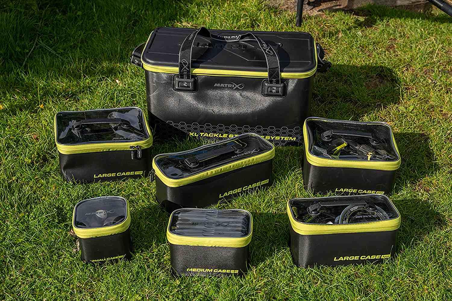 Constructed from heavy-duty EVA with heat-sealed seams, this case is 100% waterproof from the bottom up. Its dimensions are precision-engineered to work as part of the Matrix Modular System, fitting perfectly into larger Matrix luggage or tray units to maximize every inch of your tackle storage.