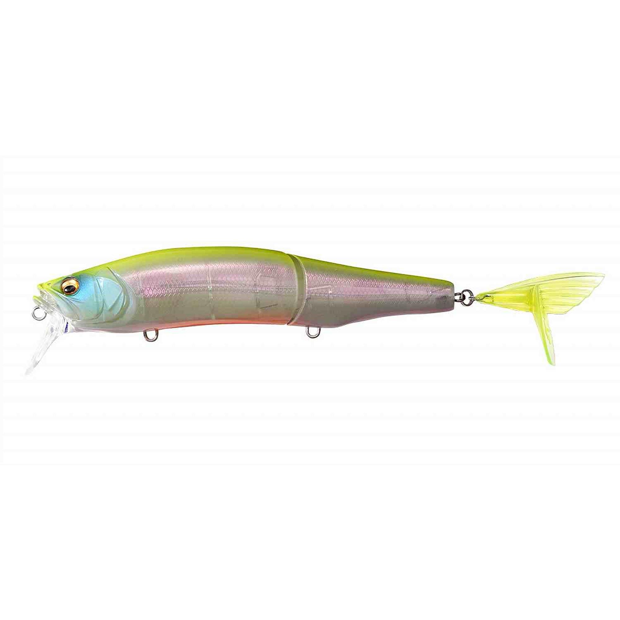The GORHAM 147F is a jointed subsurface lure equipped with the Twin Spark LBO, a dual synchronized LBO II(PAT.) mass transfer system present in each segmentation of the lure. This patented moving balancer system significantly improves its flying characteristics and casting distance, while providing optimum swimming balance for immediate action startup even on windy days.