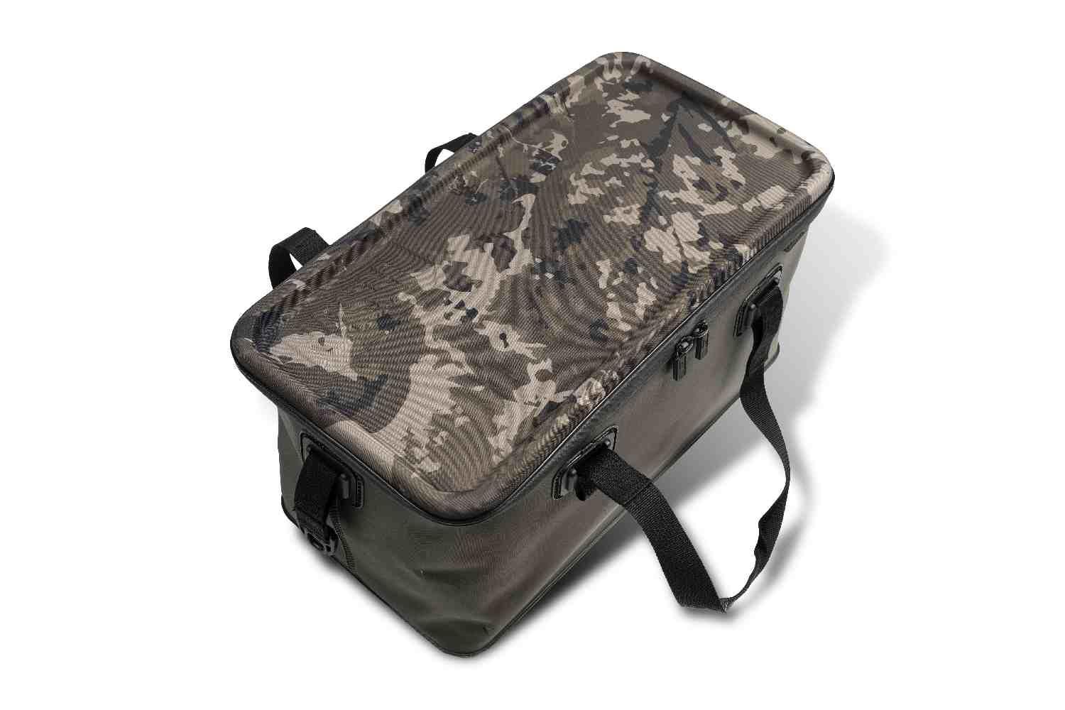 Bivvy Table Functionality: The moulded camouflage lid features a recessed lip, turning the top of your carryall into a stable work tray for tying rigs or a compact bivvy table for your essentials.