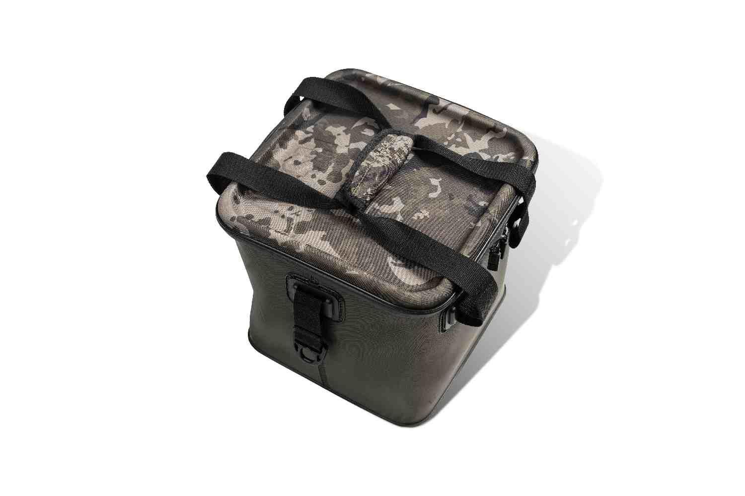 A redesigned lip and zip configuration improves resistance to water ingress, while moulded camouflage lids double as practical work surfaces or compact bivvy tables. Neoprene-wrapped carry handles and reinforced attachment points provide secure transport, with compatibility for the Subterfuge Universal Shoulder Strap (sold separately).