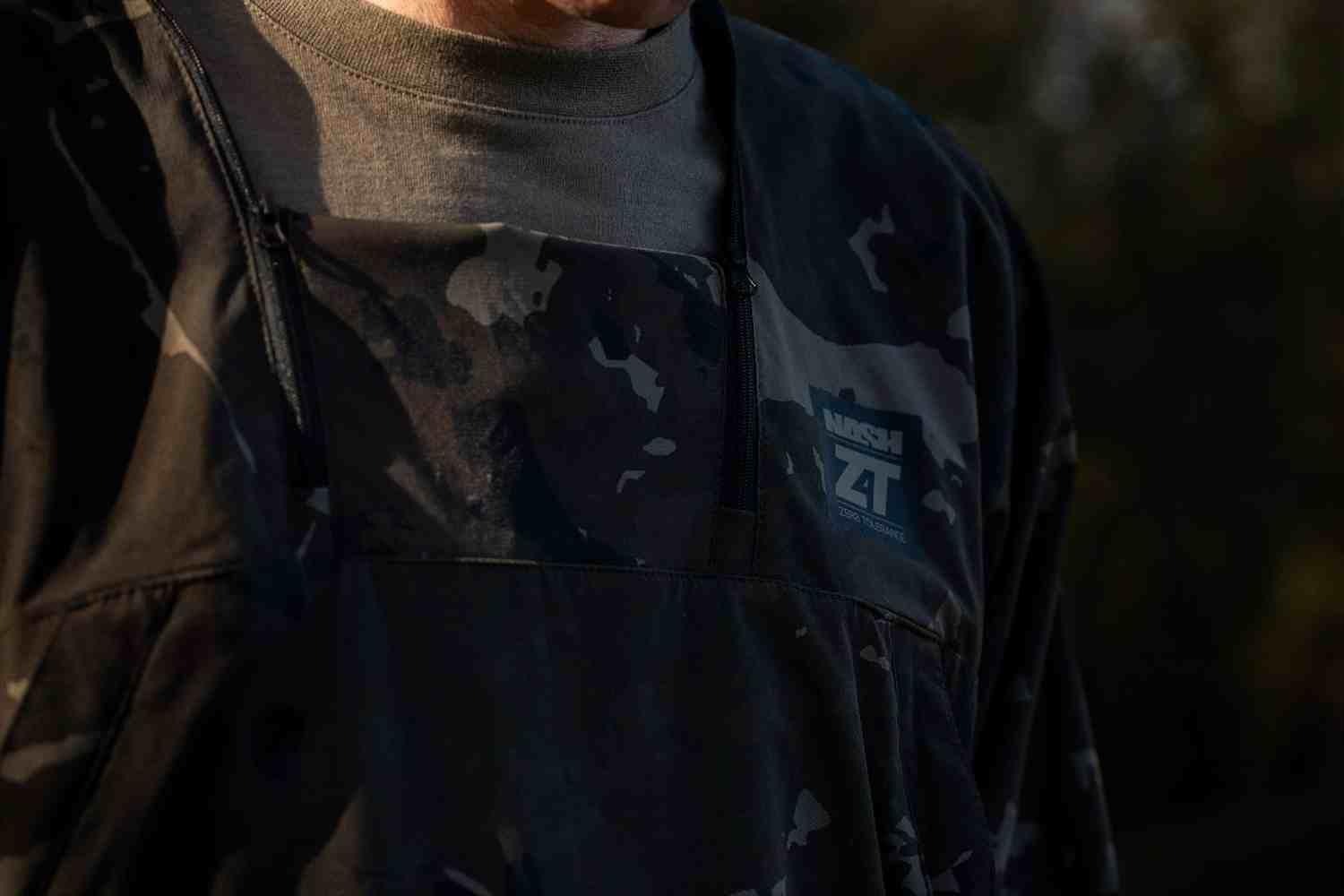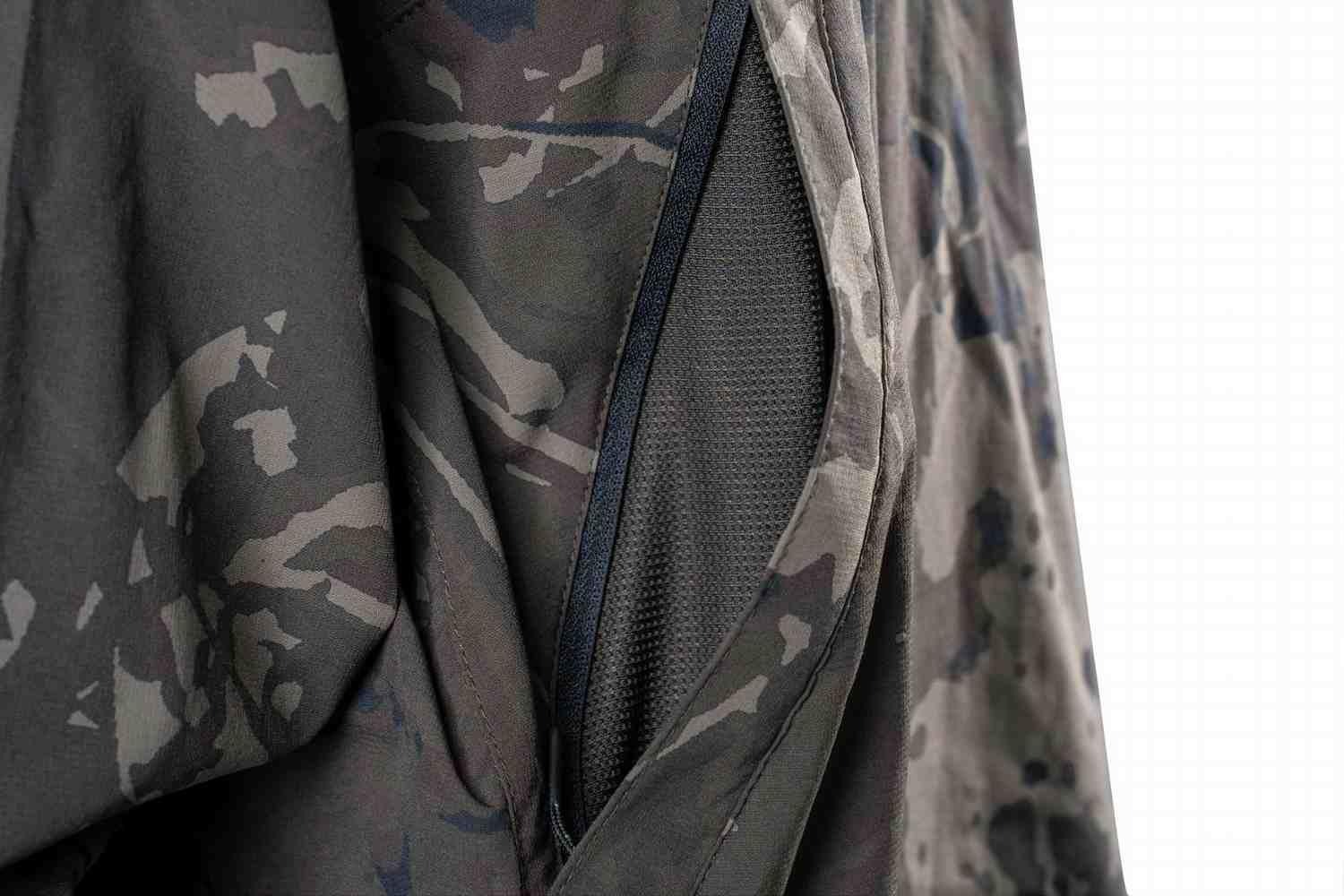 Versatility for all temperatures and activity levels comes from the zipped rear panel pocket complete with mesh lining. Open the zips to allow the rear mesh pocket and the under arm mesh panels to promote air flow and prevent moisture build up when you are active. Other features include a waterproof pocket on the sleeve and large zipped kangaroo pouch pocket which will take a bag of boilies, essential accessories or small pouches.