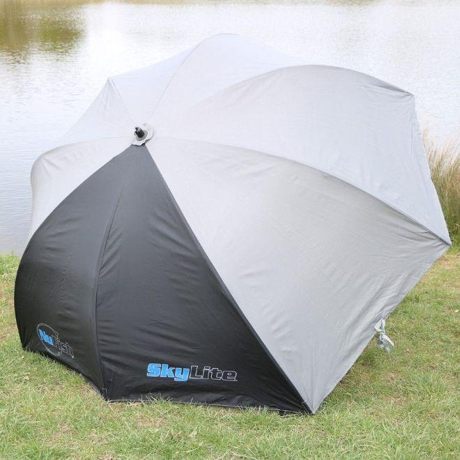 THIS 50″ UMBRELLA IS MANUFACTURED USING A GRAY AQUALOCK PVC MATERIAL THAT ALLOWS DAYLIGHT IN AND UVURAYS OUT,ITS OUTER COVER COLOUR REFLECTS LIGHT AROUND THE INNER CANOPY TO ILLUMINATE YOUR FISHING WORKING AREA 50″ LIGHTWEIGHT FIBERGLASS UMBRELLA CONSTRUCTED FROM 6mm FIBREGLASS RIBS AND ALUMINIUM CENTRE POLE COVERED WITH A STRONG WATERPROOF COATED FABRIC AND 100% WATERPROOF COVER WITH FULLY TAPED SEAMS CREATING THE BEST IN LIGHTWEIGHT UMBRELLAS. COMPLETE WITH CARRY BAG.