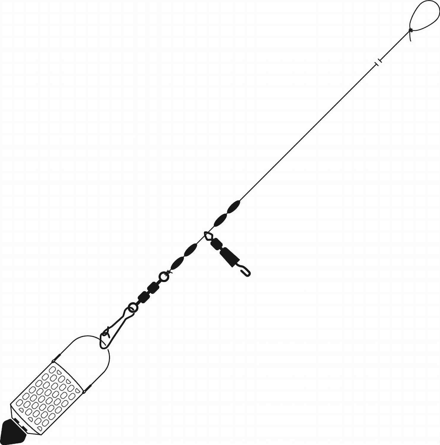 A: The hooked snap swivel is universal. You can use anything from a light 15g window feeder up to heavy distance cage feeders. The rig is balanced to handle a wide variety of weights.