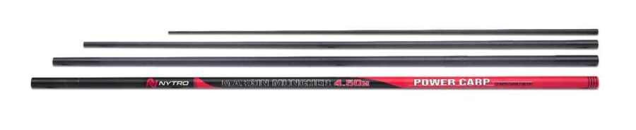 The Nytro Margin Muncher 4.5m is an exceptionally strong margin pole, perfect for landing the biggest carp when fishing commercials and carpodromes. These bomb-proof take-apart poles feature a progressive action and are designed for use with heavy elastics. Ideal to land large fish quickly. The Margin Muncher comes pre-fitted with a PTFE bush and with a winder bung and extraction key. The number two section comes with an extra carbon reinforcement to allow for a puller bush to be fitted.