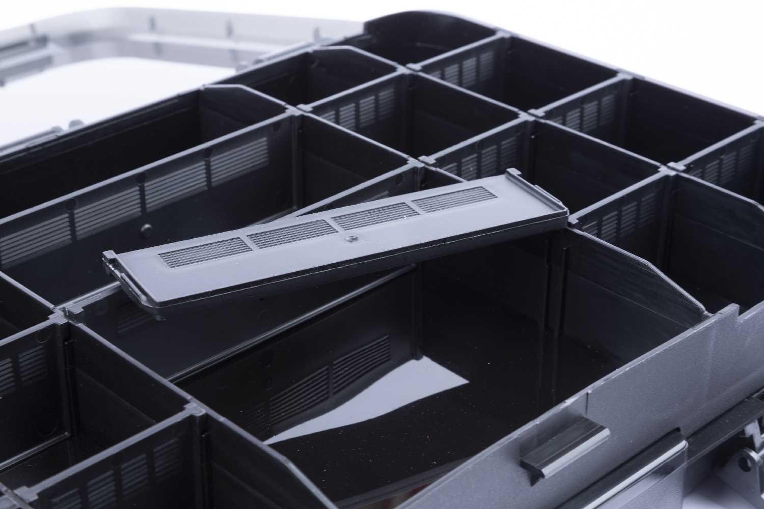 This double layer tackle box is designed for feeder anglers. The two layers offer lots of space for all your feeders and accessories. The tackle box is conveniently arranged with additional dividers to store all your gear in an orderly manner.
