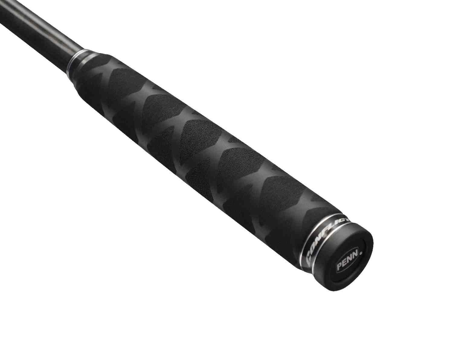 The PENN® Conflict X Inshore series is specifically designed for targeting inshore species like Seabass and Bluefish, following the latest Japanese trends. Due to the use of only the best carbon materials combined with carbon X-wrap technology, these are simply unparalleled in its price class. The low diameter, X-Fast action blanks are perfectly suitable for working any kind of lure like topwaters, softbaits or longjerks and besides that it gives great casting properties. They are finished with high quality SW proof Fuji K-type guides with Fazlite rings and VSS type reel seats to make fishing as comfortable as possible. The range consists of many different models, making sure that there is a model available for any type of inshore fishing; whether you need a shorter rod for targeting seabass or bluefish from the boat, or a long-distance casting for fishing from the shore, the Conflict X range covers it at a great value for money!