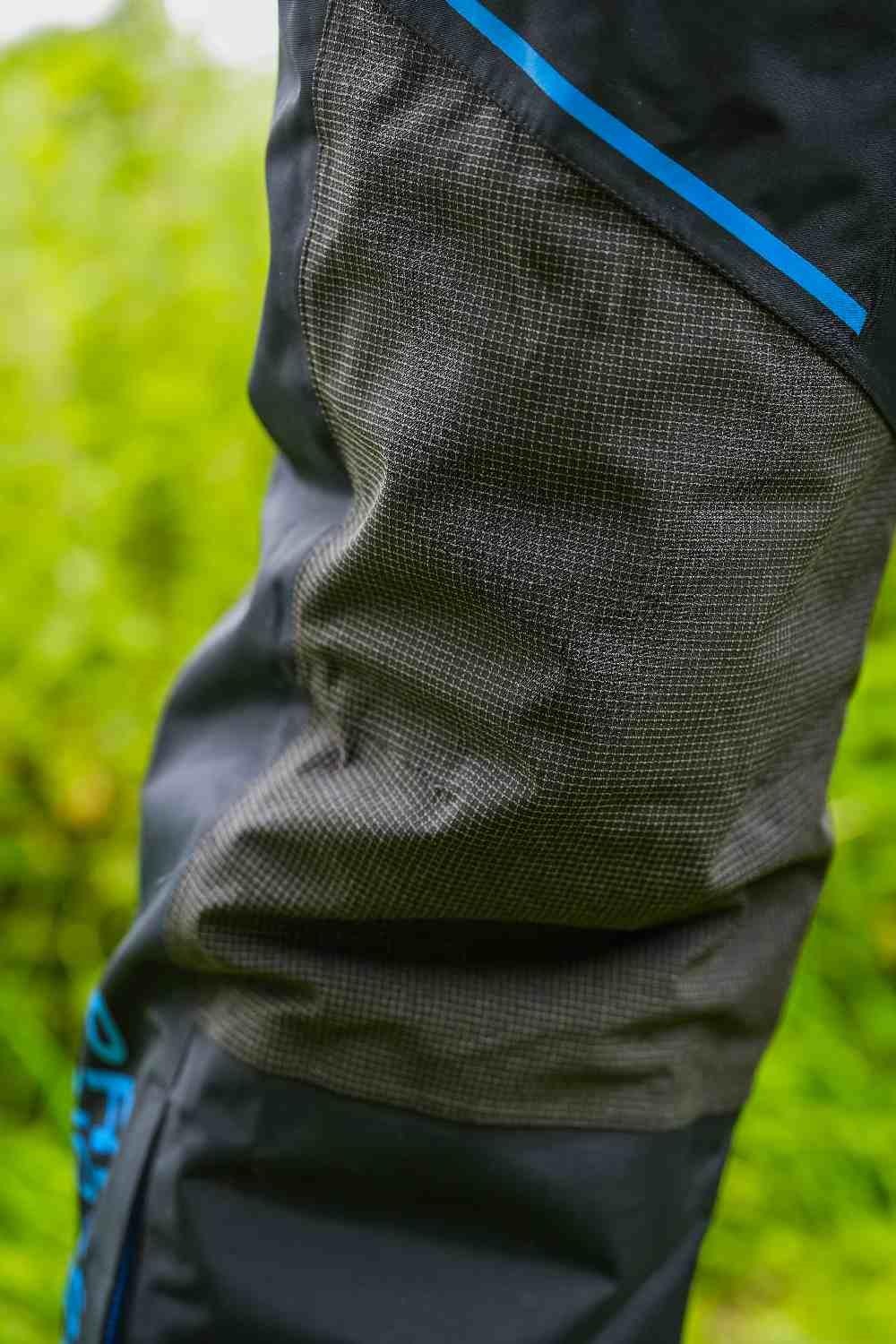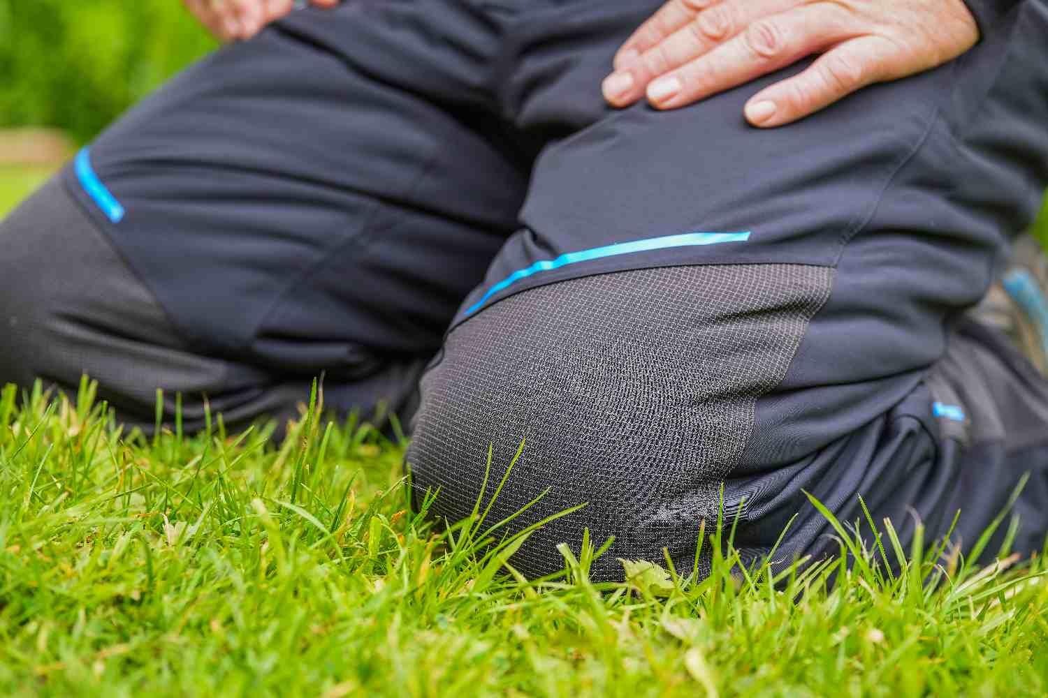 Key areas of reinforcement can be found throughout the suit, including the knee area, which features an extra durable layer of woven fabric.