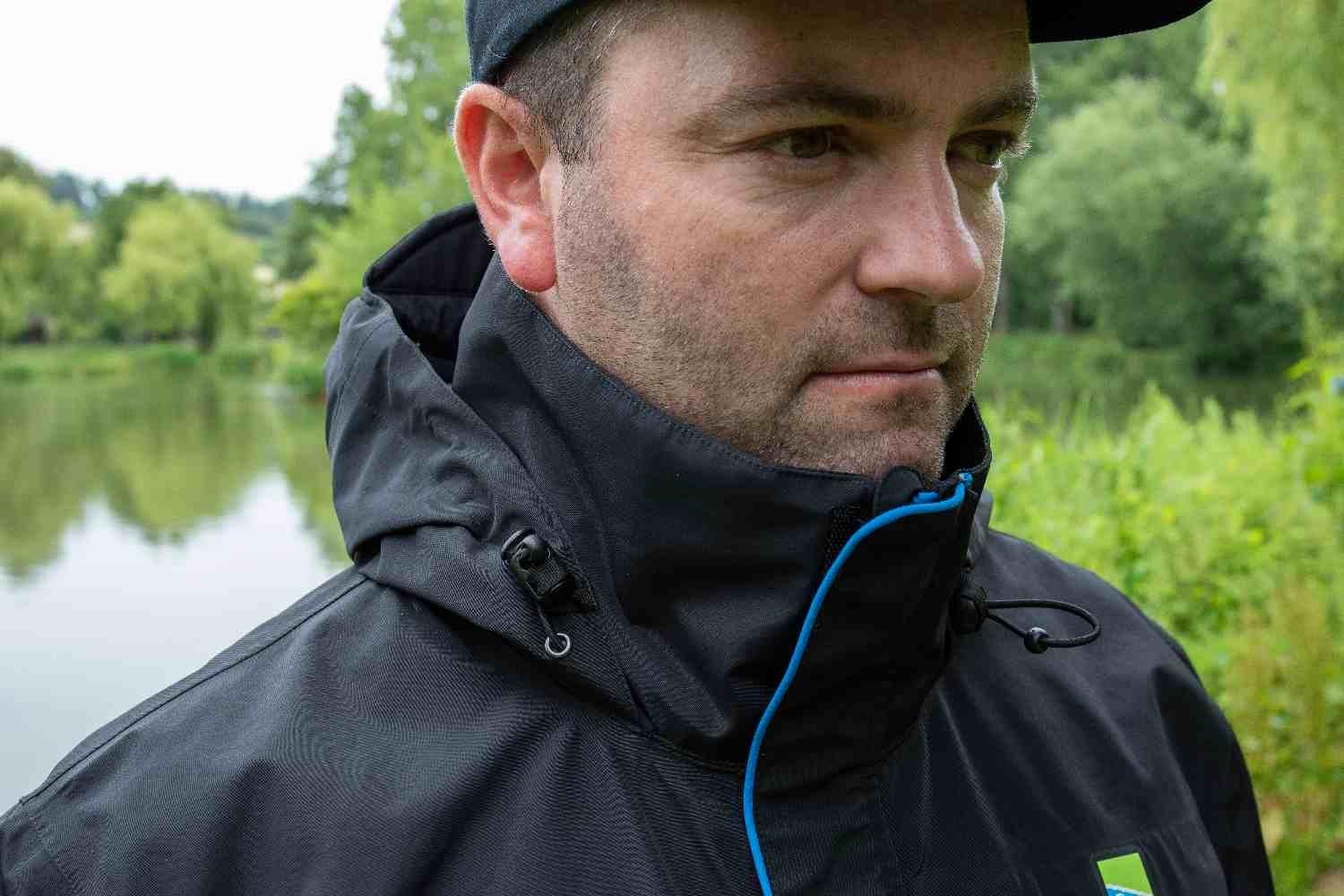– Waterproof hood with stiffened peak & adjustable toggle cord