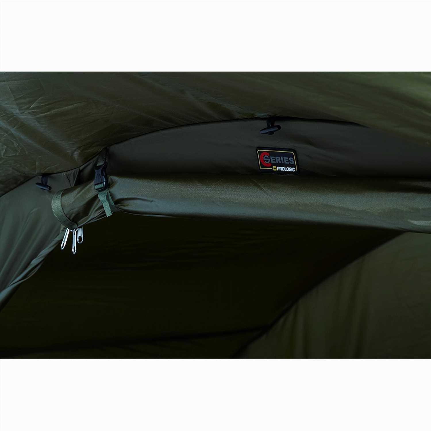Built using an ultra-stable and easy-fold two-rib frame, the C-Series one-man bivvy is the lightweight and easy-to-assemble shelter you never realised you needed. Carp anglers will find space aplenty inside thanks to the optimised design, giving you freedom to organise your gear without compromise. Two-way zippers on the front door allow it to be used in a letterbox configuration, so you can carry on spotting fish activity even when you’re stuck inside the bivvy when the weather takes a turn for the worse. This feature also helps to increase internal air flow through the bivvy when combined with the large rear mosquito mesh-covered ventilation window. On those balmy summer fishing days and nights, the front doors and side can be completely opened and pinned back giving you perfect panoramic views and offering a comfortable climate.