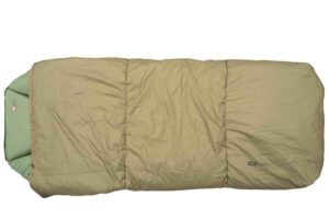 Don’t let cold conditions stand in the way of you and your next memorable carp capture – hunker down for the night in our Element Comfort sleeping bag complete with Element thermal cover. This package gives you everything you need for a warm, comfortable, and restful night’s sleep on the bank – until your alarm screams off, that is! Made from ultra-lightweight, breathable, and water-resistant ripstop fabric, the sleeping bag also features statically positioned hollow fibre filling that helps optimise insulation. It also has heavy-duty and easy-access zippers on both sides that are accompanied by anti-jam beading for when you need to get to your rods in a hurry. The sleeping bag can be securely fastened to the head and foot sections of your bedchair via contoured elasticated hoods, while a centrally positioned and adjustable seatbelt strap reduces movement even further. Meanwhile, the thermal cover is layered with a hollow fibre filling and lined with an ultra-soft micro fleece and features an elasticated foot hood and two elasticated straps with fixing clips ensure it can be securely fitted to your bedchair frame. It also has generous overhangs on each side to eliminate drafts. Both items pack down small for easy transport and combined together, the sleeping bag and thermal cover offer such a high level of warmth and comfort that you’ll wonder how you ever fished in the cold without them. But they are also perfect for summer fishing too – you can sleep on top of the sleeping bag using the thermal cover as a duvet – making this set the ultimate all-season carp sleeping solution.