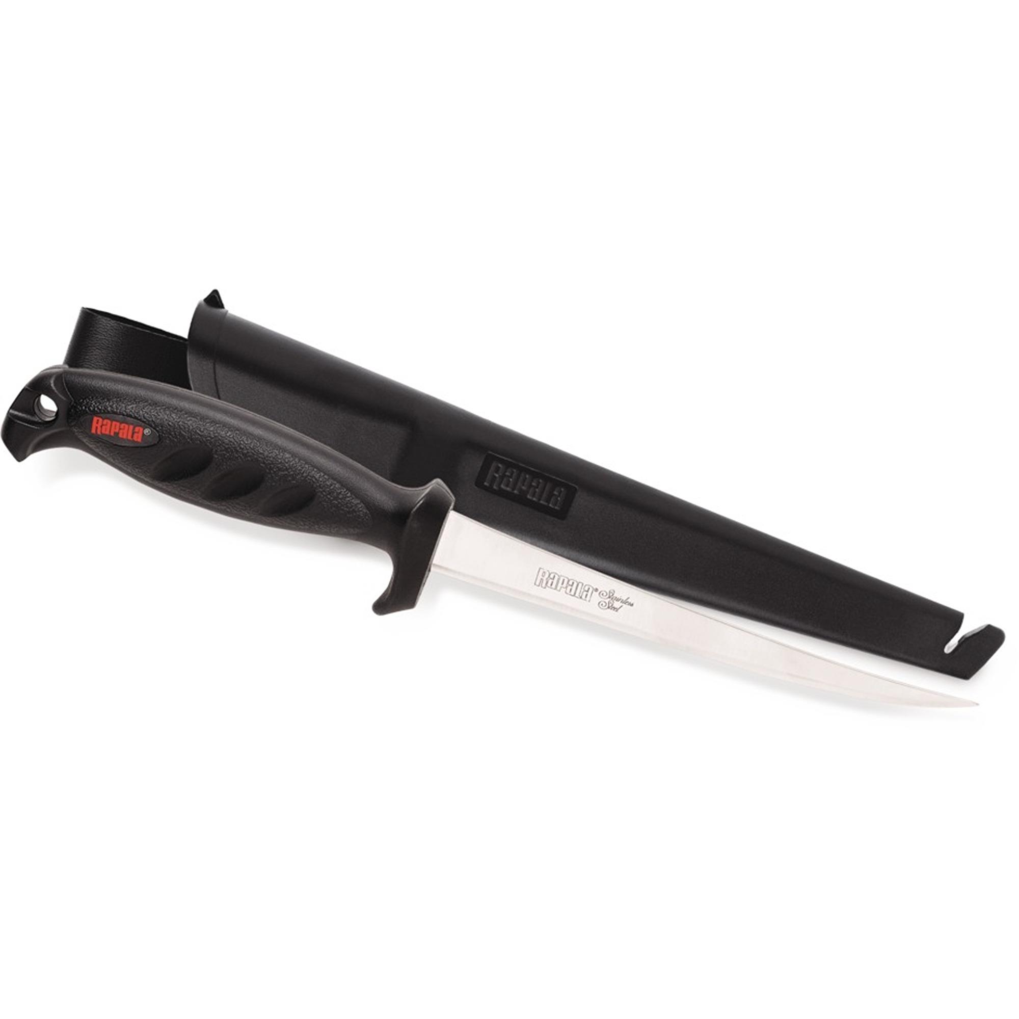 The Deluxe Falcon Fillet offers superior filleting at a value price. Contoured handle, comfortable and durable enough for arduous filleting tasks, features a slip resistant texture, matched with flexible, stainless steel blade that makes short work of filleting. Integrated finger guard offers protection from slippage during messy fillet sessions. Redesigned multi-purpose hard sheath protects the blade and user. Fine grade ceramic-sticks sharpener is built-into the sheath allowing “in-the-field” sharpening