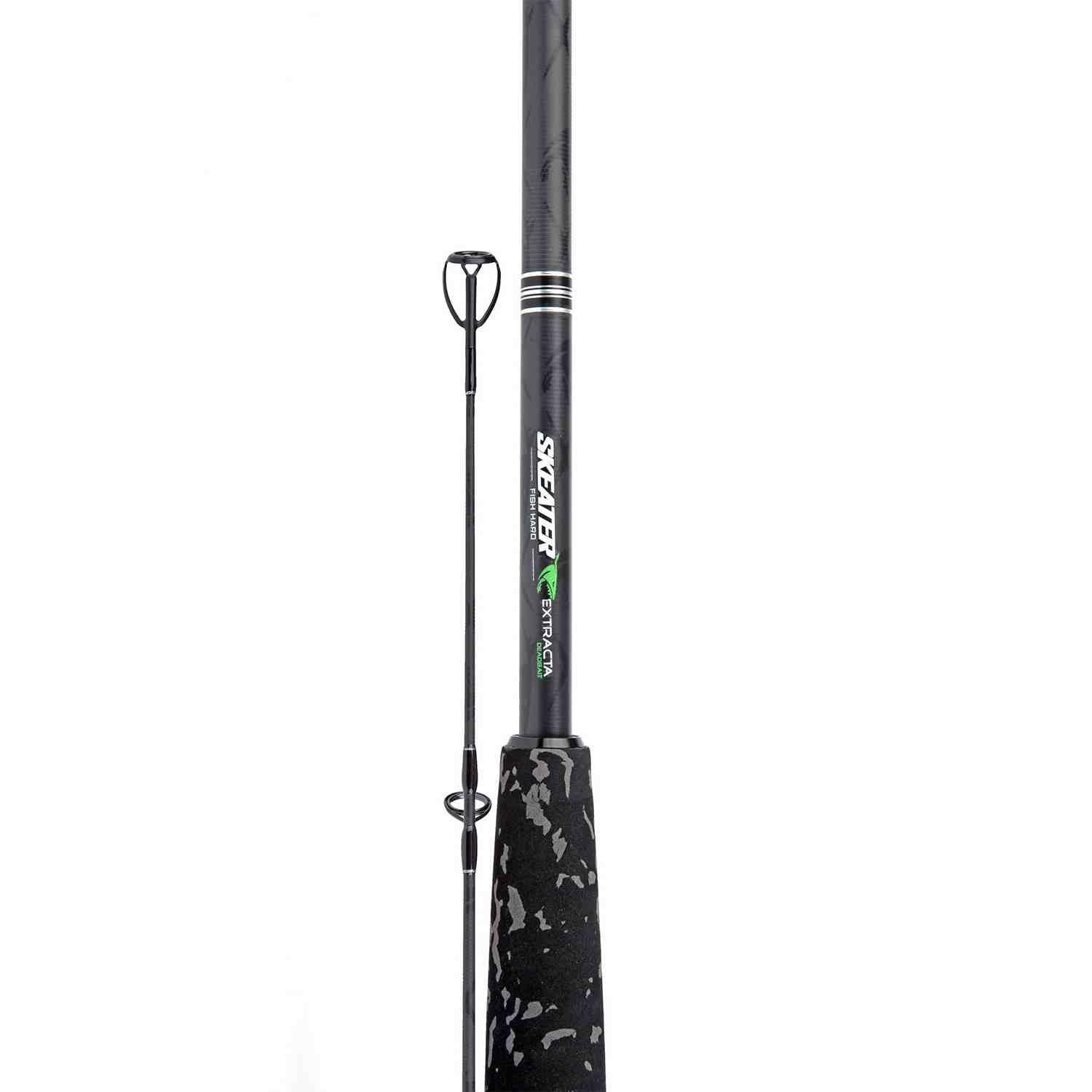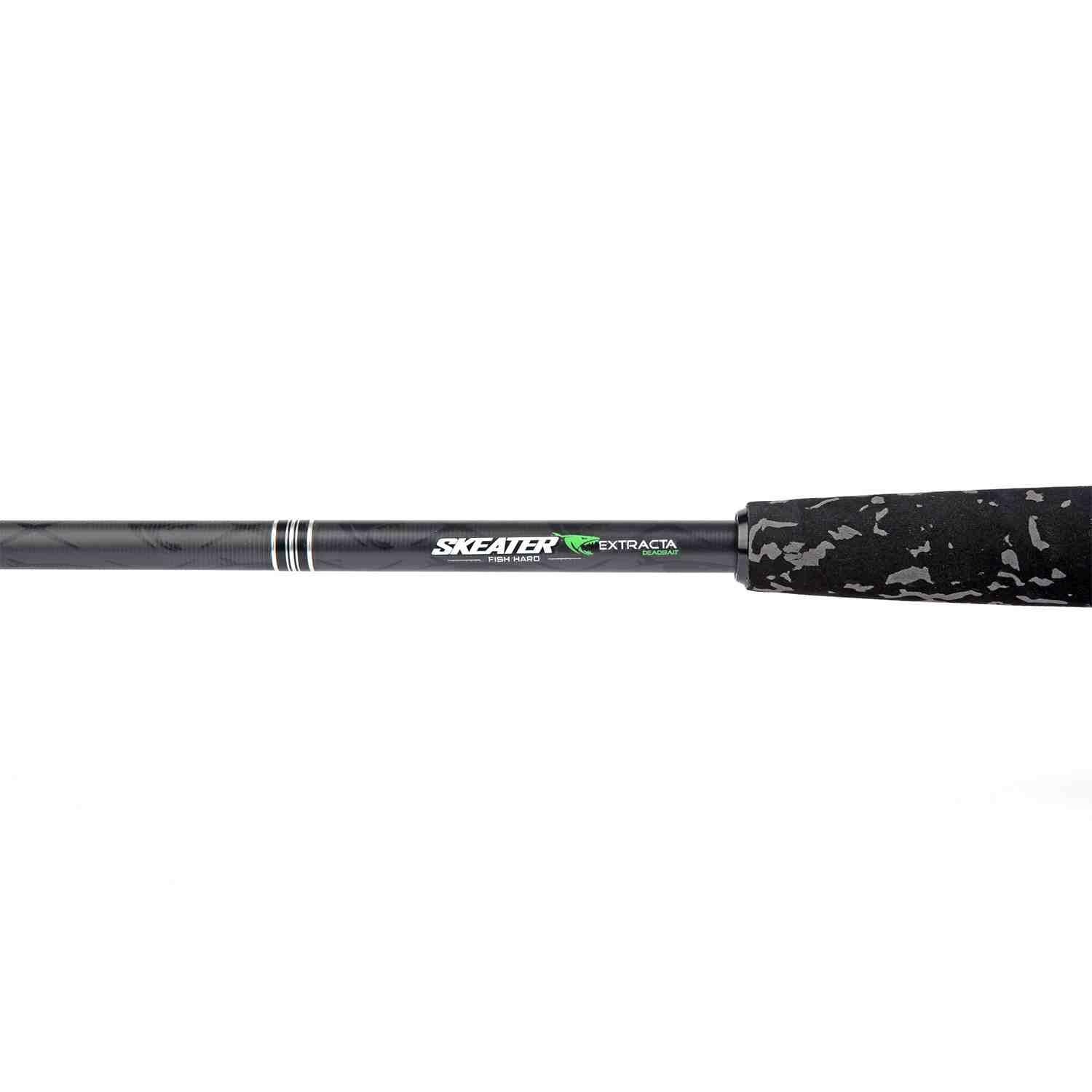 Compact (tele-style) rods are extremely popular and could not be left out of the Skeater range of dedicated predator rods. These types of rods are popular due to their compact transport length, combined with a powerful action. We have designed five models in this range, two actions in 9ft and three actions in 10ft, one of which is specifically intended for catfish fishing and has a test curve of 4.5Lb! Extracta rods are built to fish hard and to withstand demanding fishing situations. The four deadbait models are built on a distinctive Skeater matte-finish X-Grade mixed-modulus carbon blank. In addition, they all feature a Japanese shrink rubber handle, a DPS 17 reel seat – topped with a stylish black and grey camouflage EVA – and a set of rugged high-performance black Seaguide® lined guides.